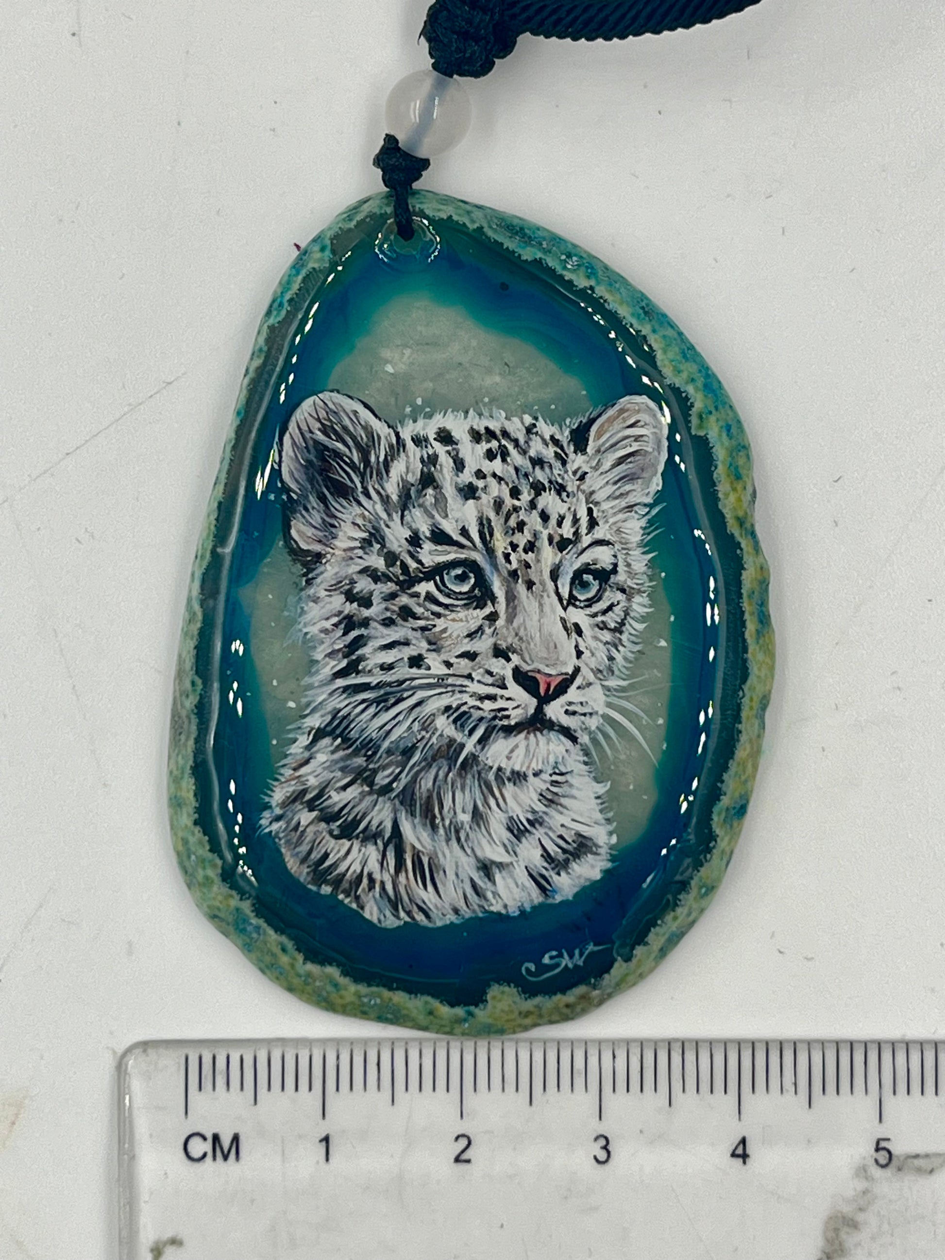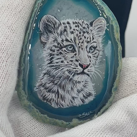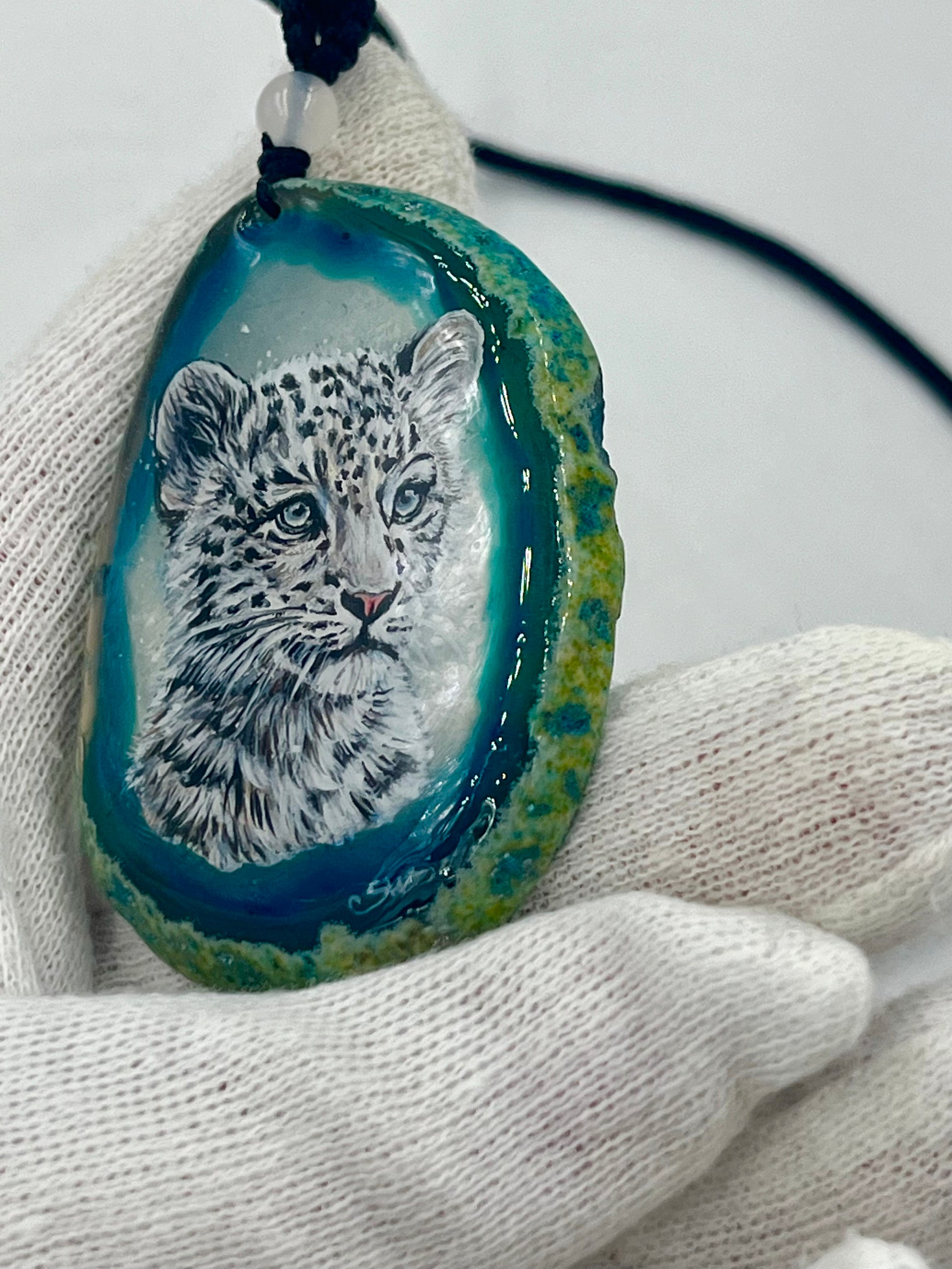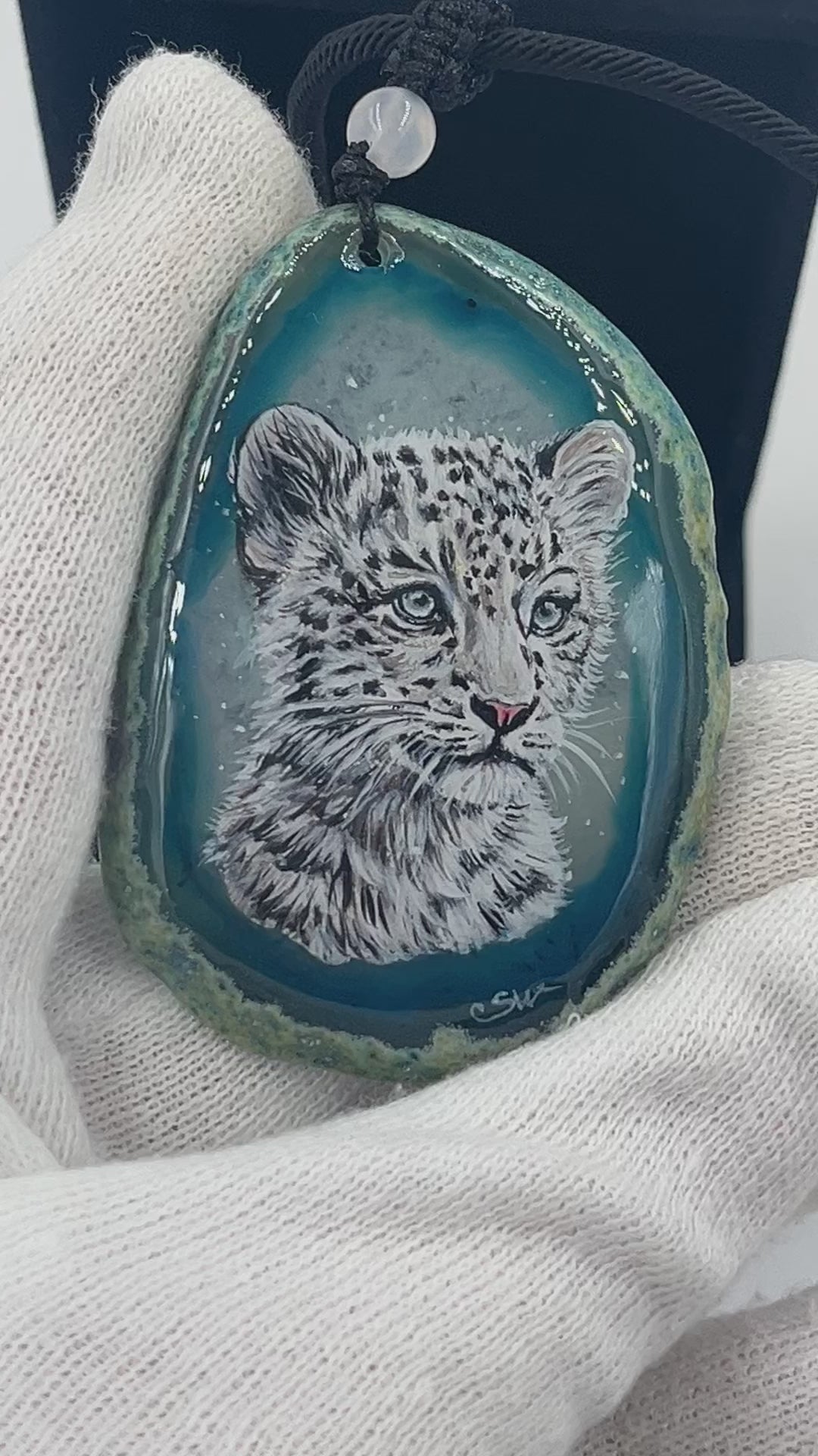 Einzigartige Anhänger /Schneeleoparden-Baby /Achat/Hand bemalt Juwelen und tragbare Kunst /Natur Schmuck