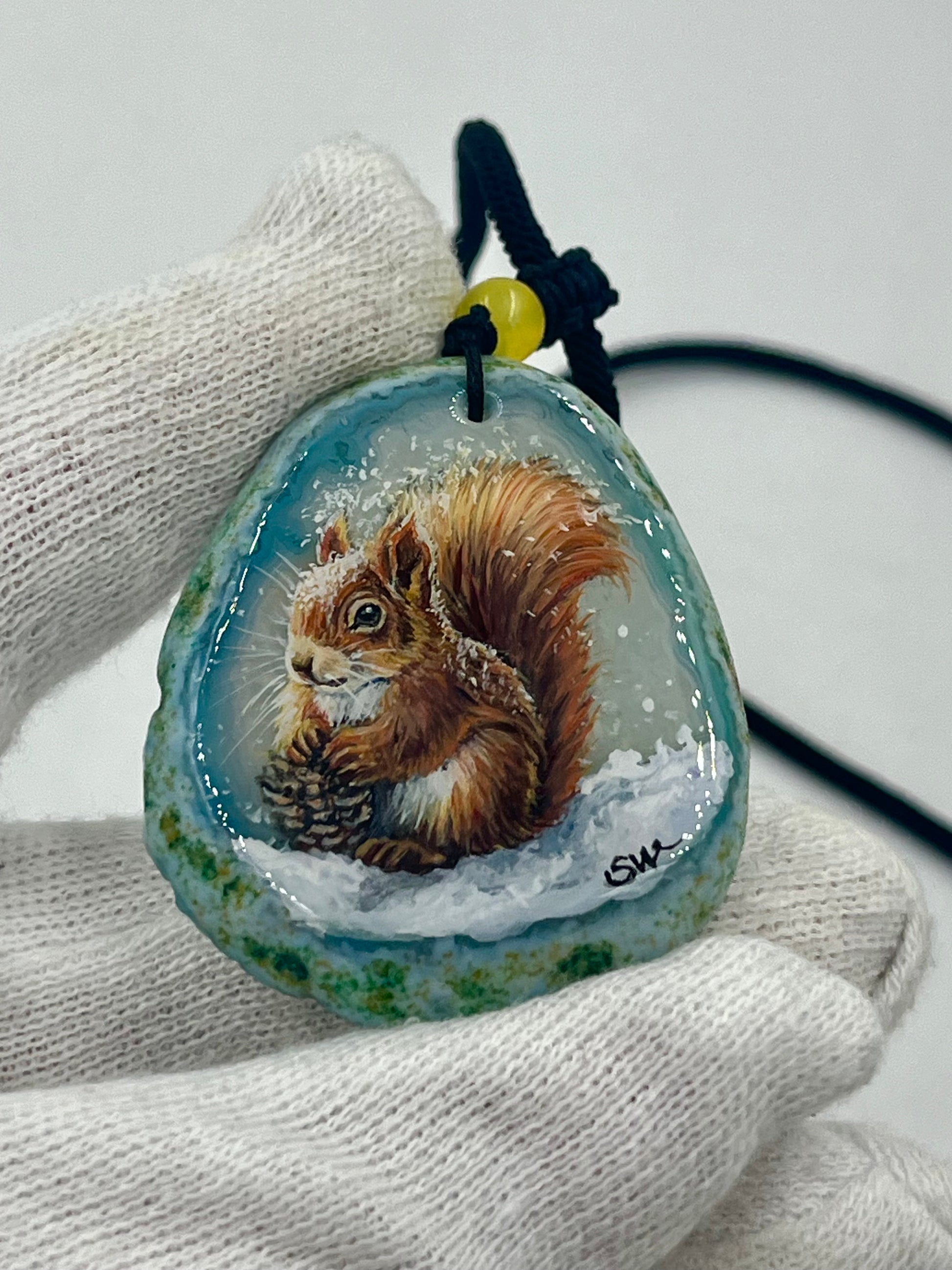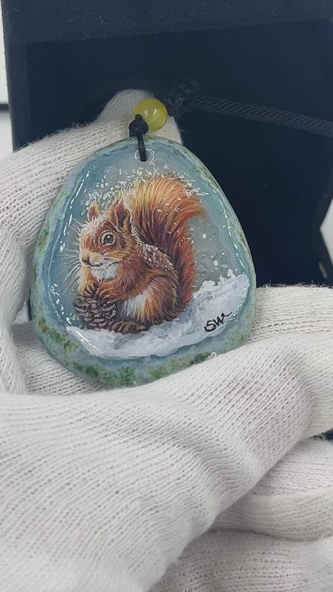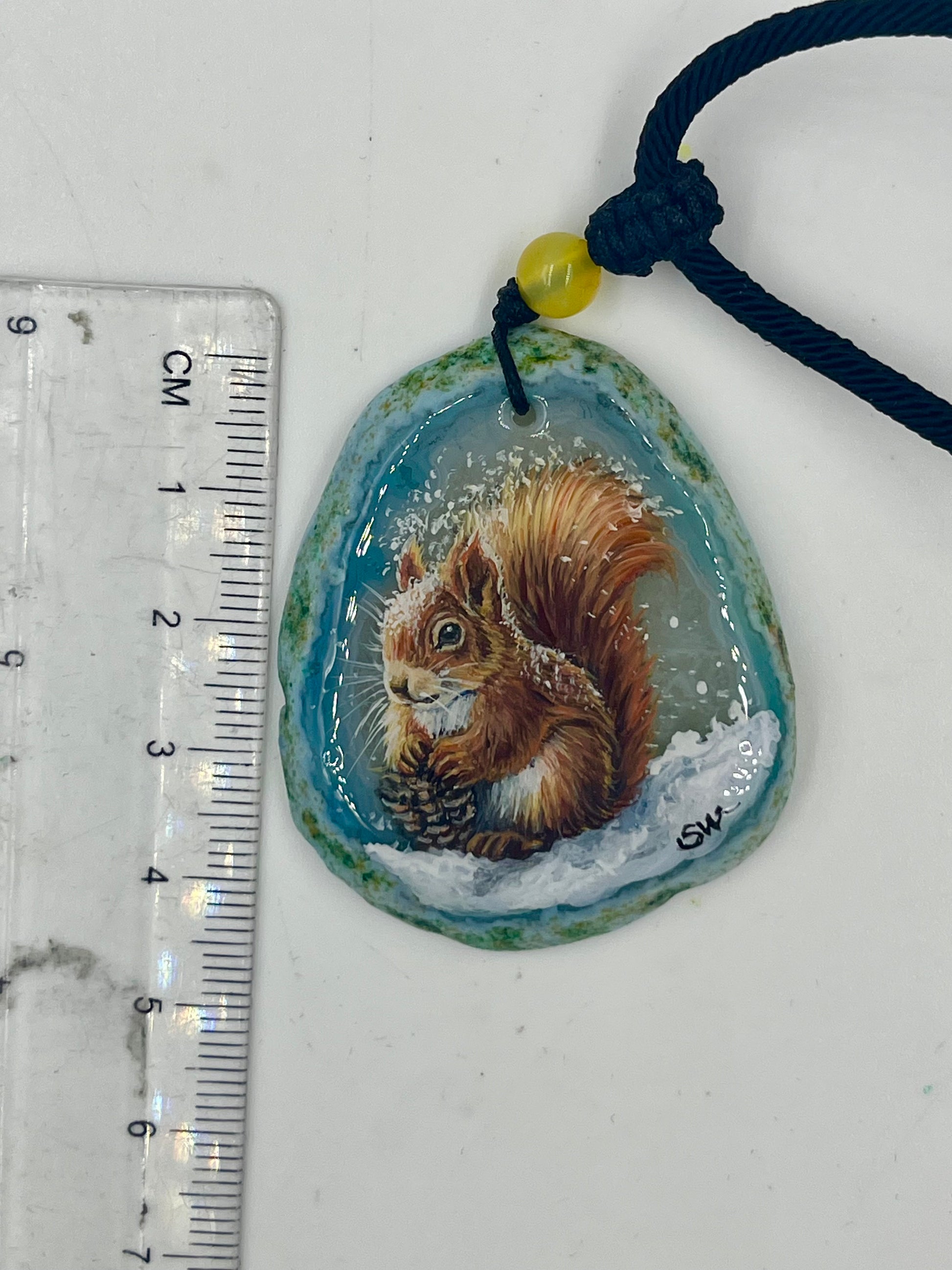 Einzigartige Anhänger /das Eichhörnchen /Achat/Hand bemalt Juwelen und tragbare Kunst /Natur Schmuck