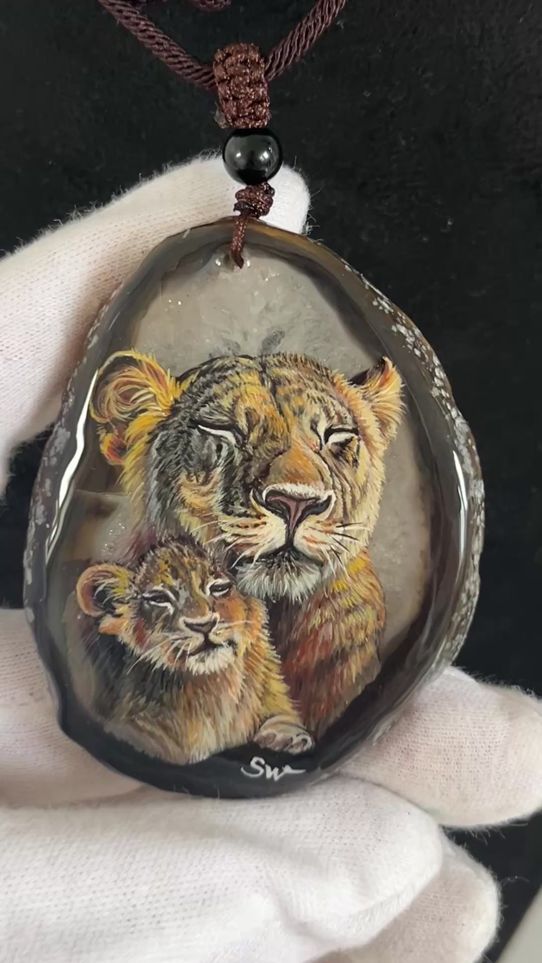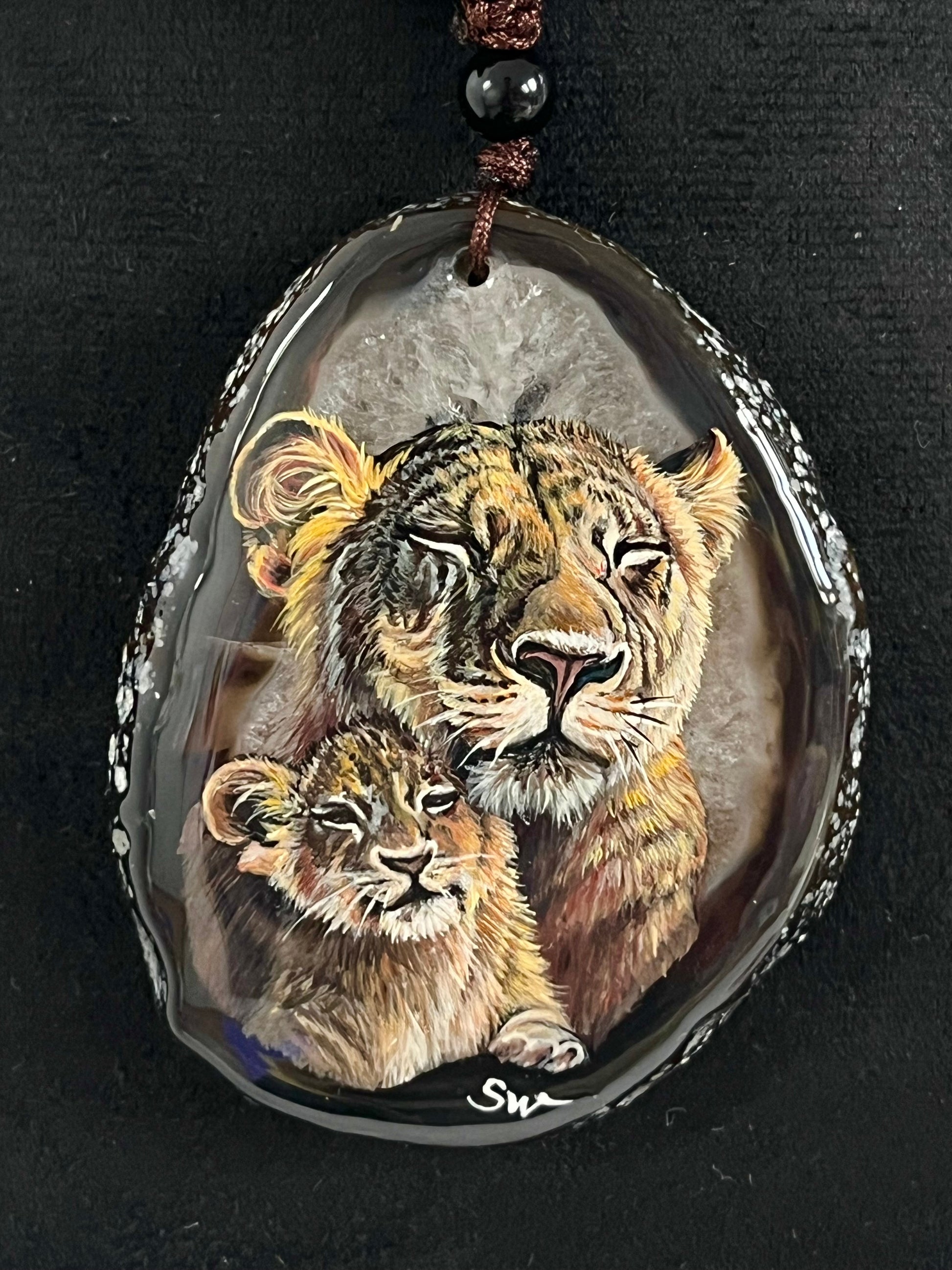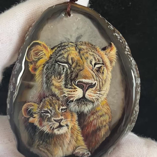 Einzigartige Anhänger /Löwe Mama und Kind/Achat/Hand bemalt Juwelen und tragbare Kunst /Natur Schmuck