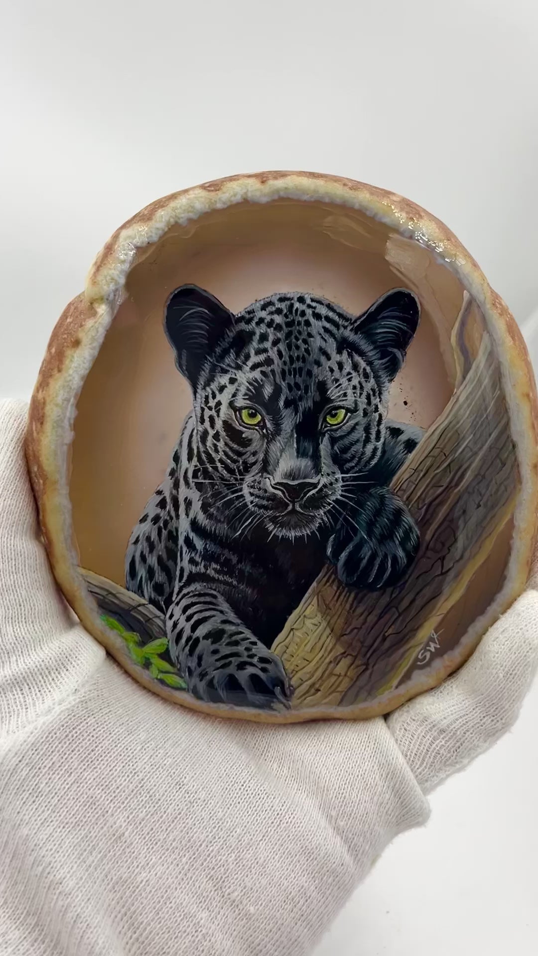 Handbemalt Naturstein, aus Achatscheibe ,Kristall Accessoire, Wildtier Malerei,Steinbemalt