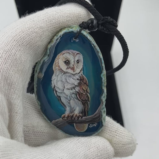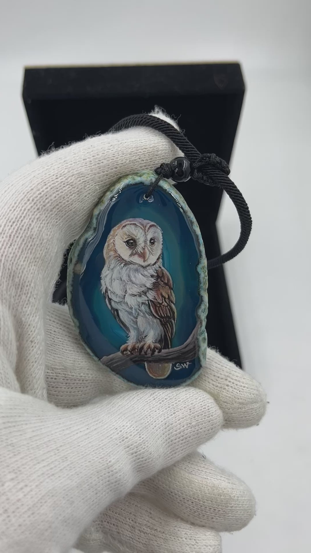 Einzigartige Anhänger /Der Eule/Achat/Hand bemalt Juwelen und tragbare Kunst /Natur Schmuck