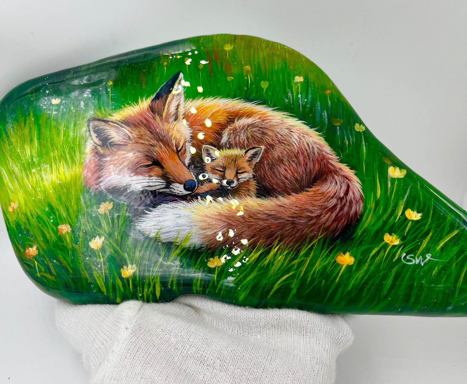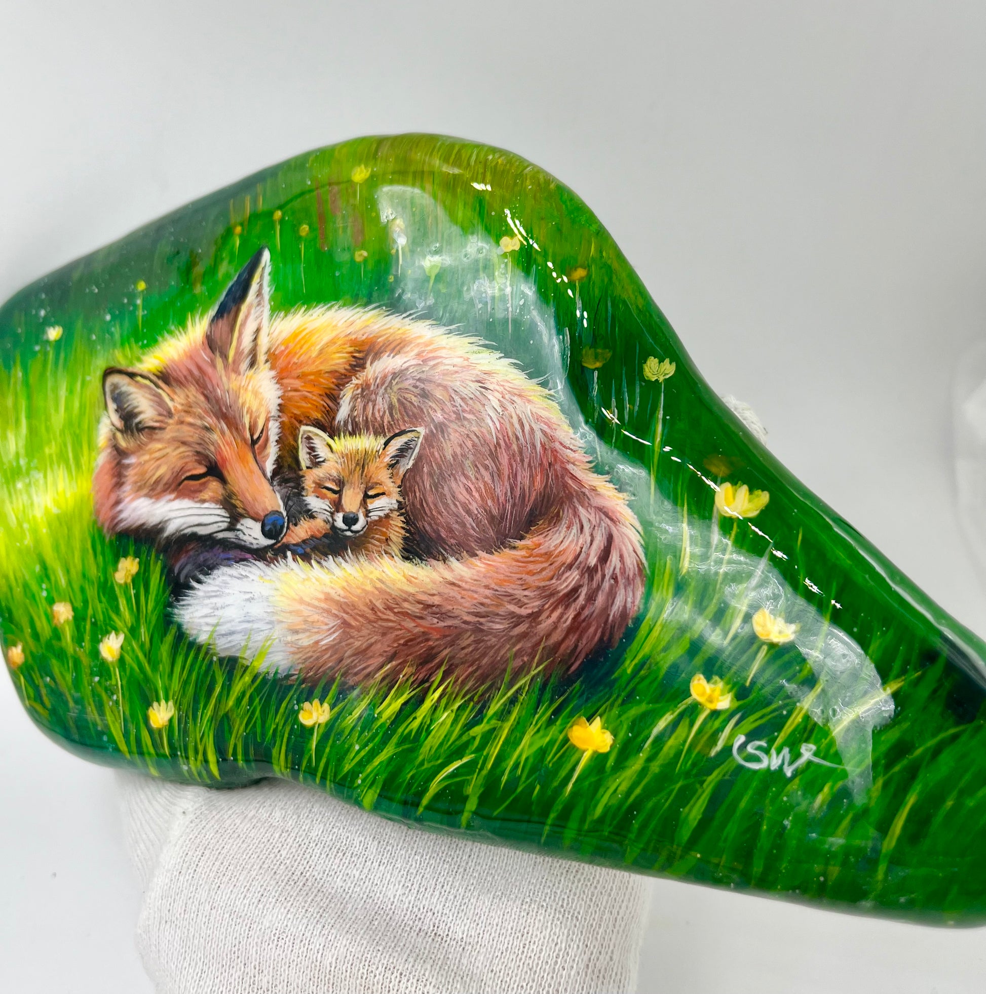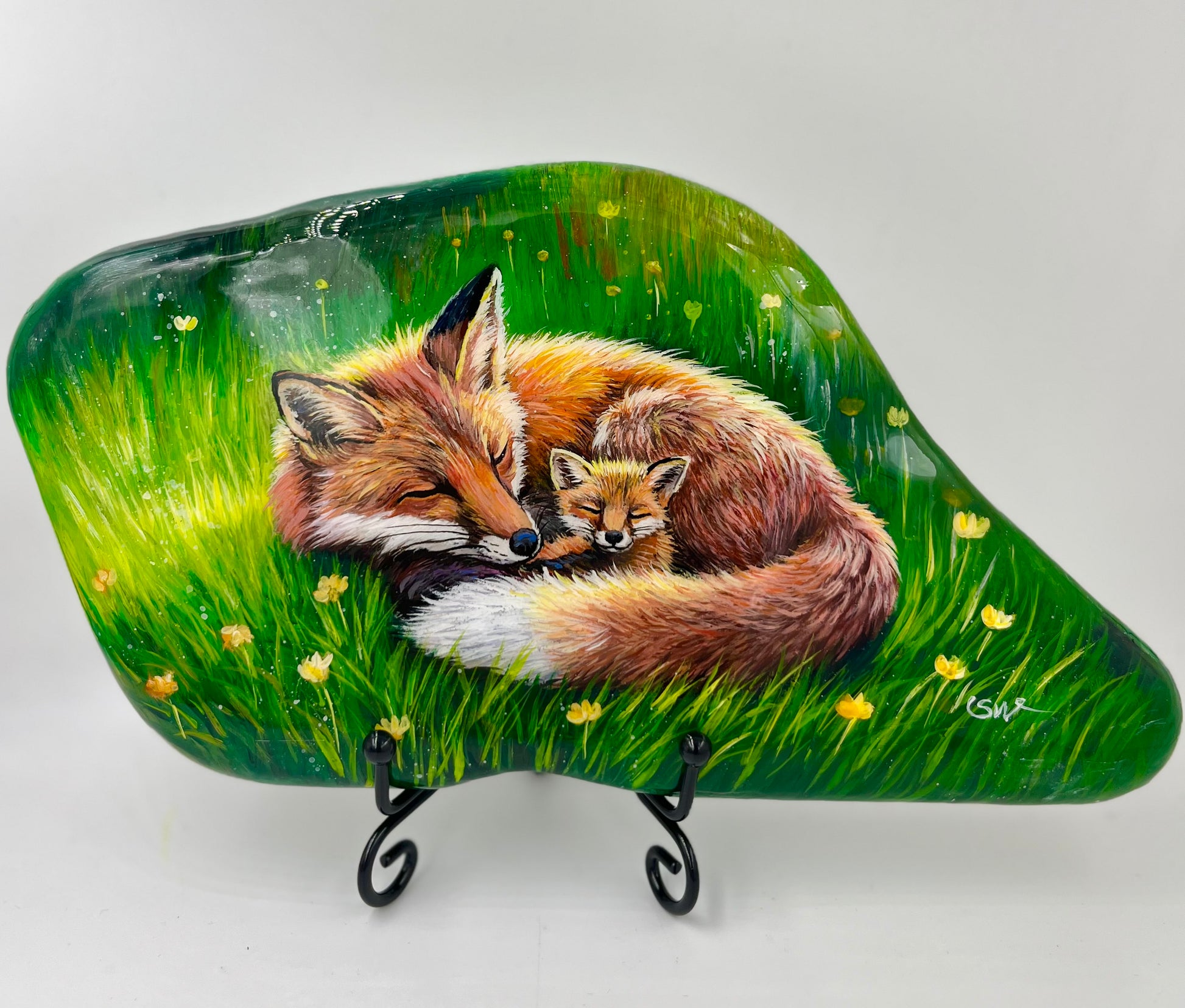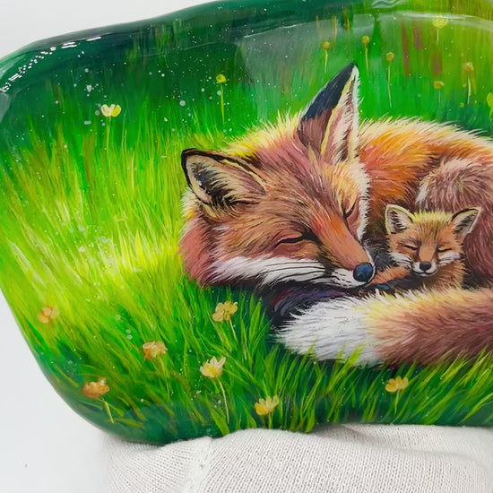Einzigartig handbemalte große Stein/die Füchse /inklusive Tischstaffelei