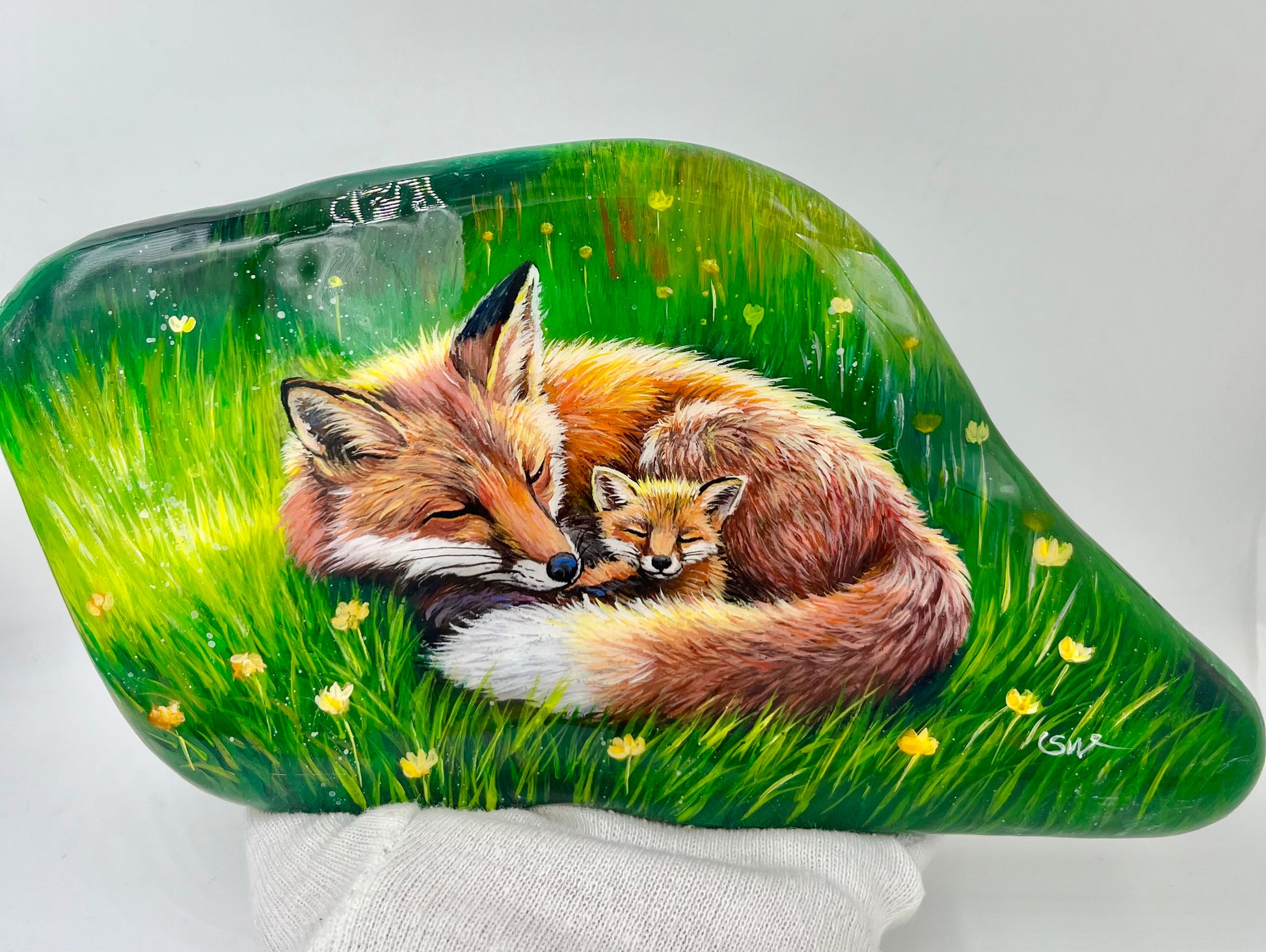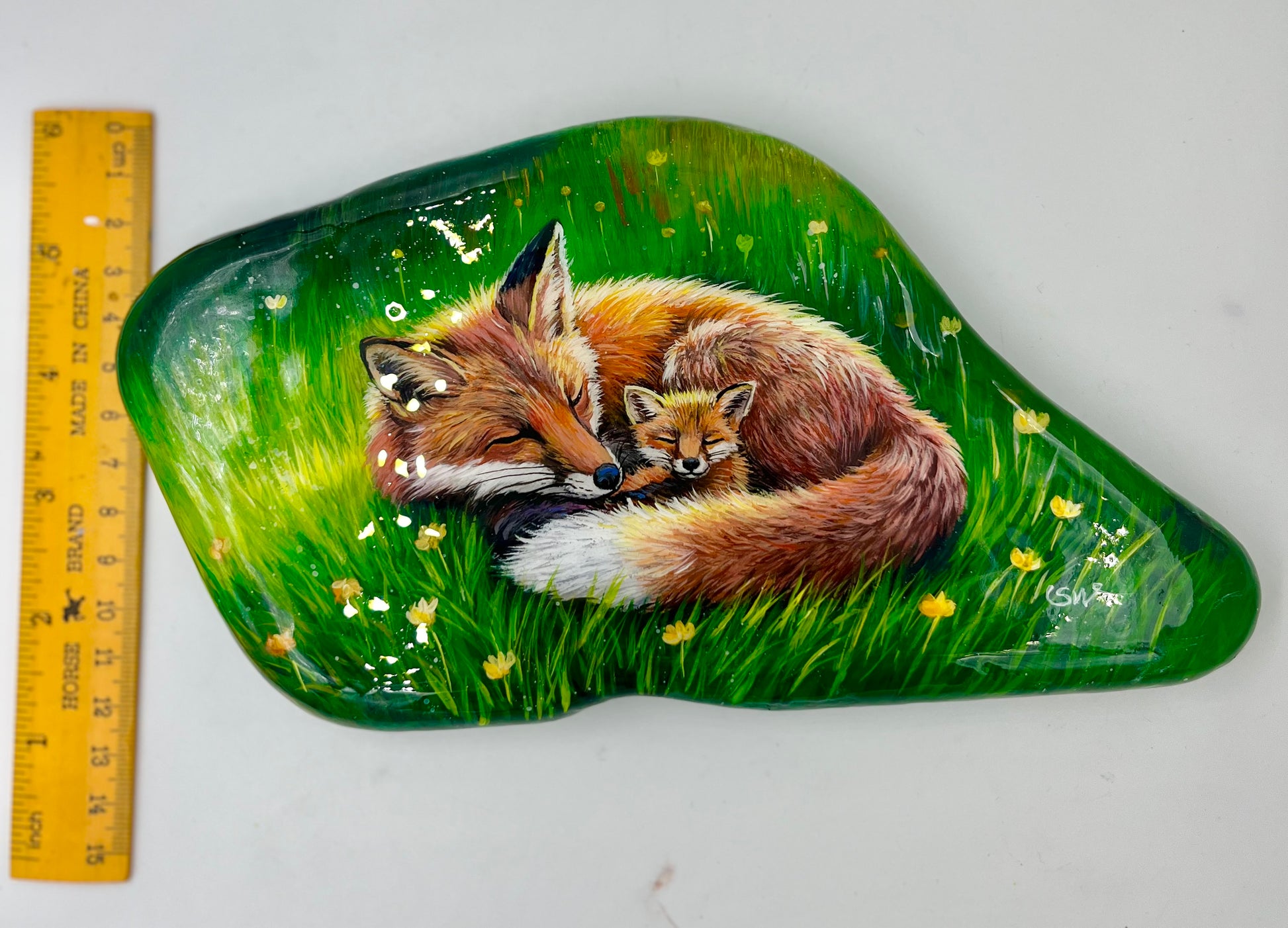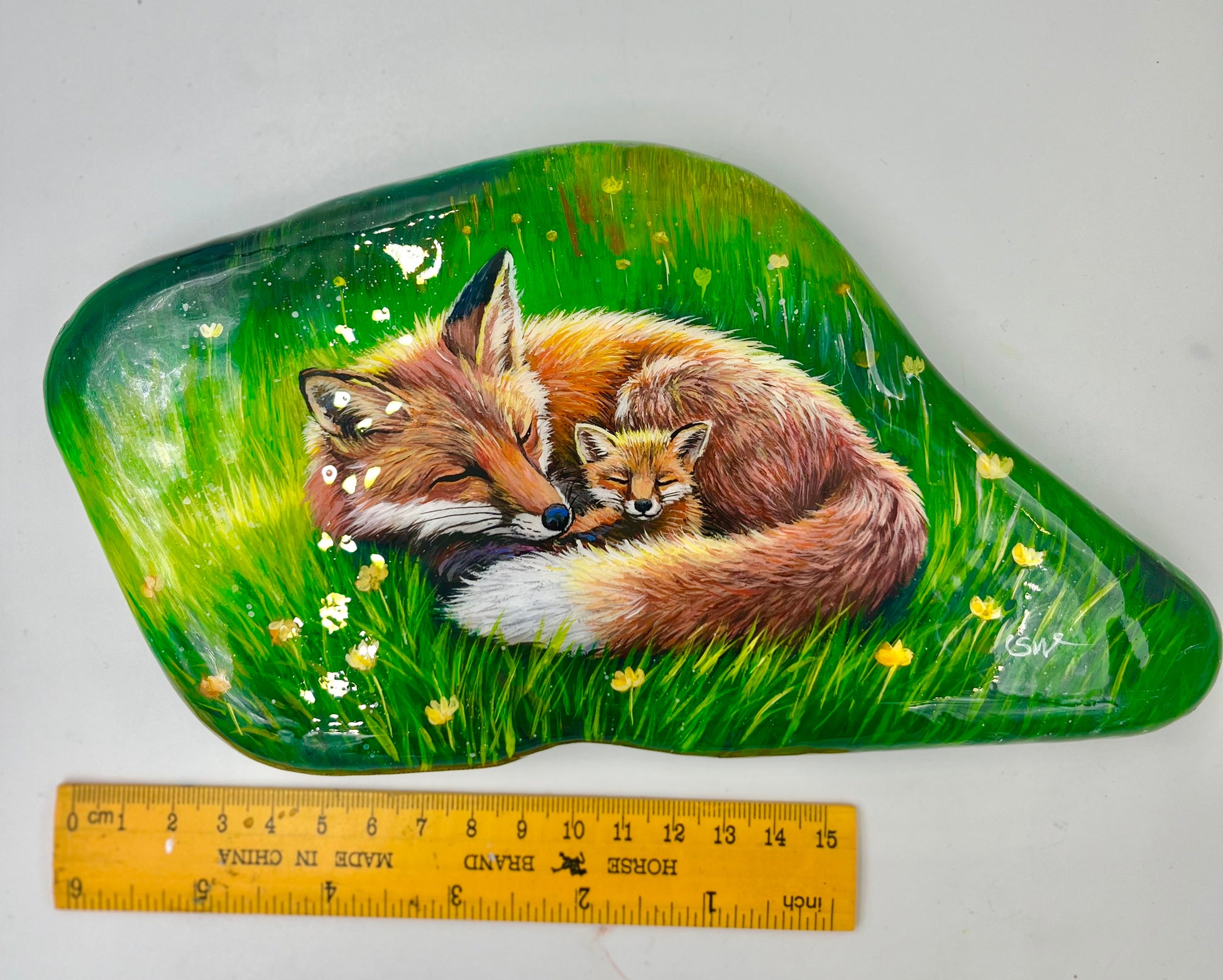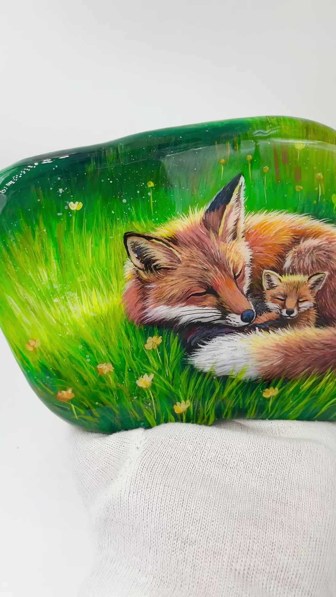 Einzigartig handbemalte große Stein/die Füchse /inklusive Tischstaffelei