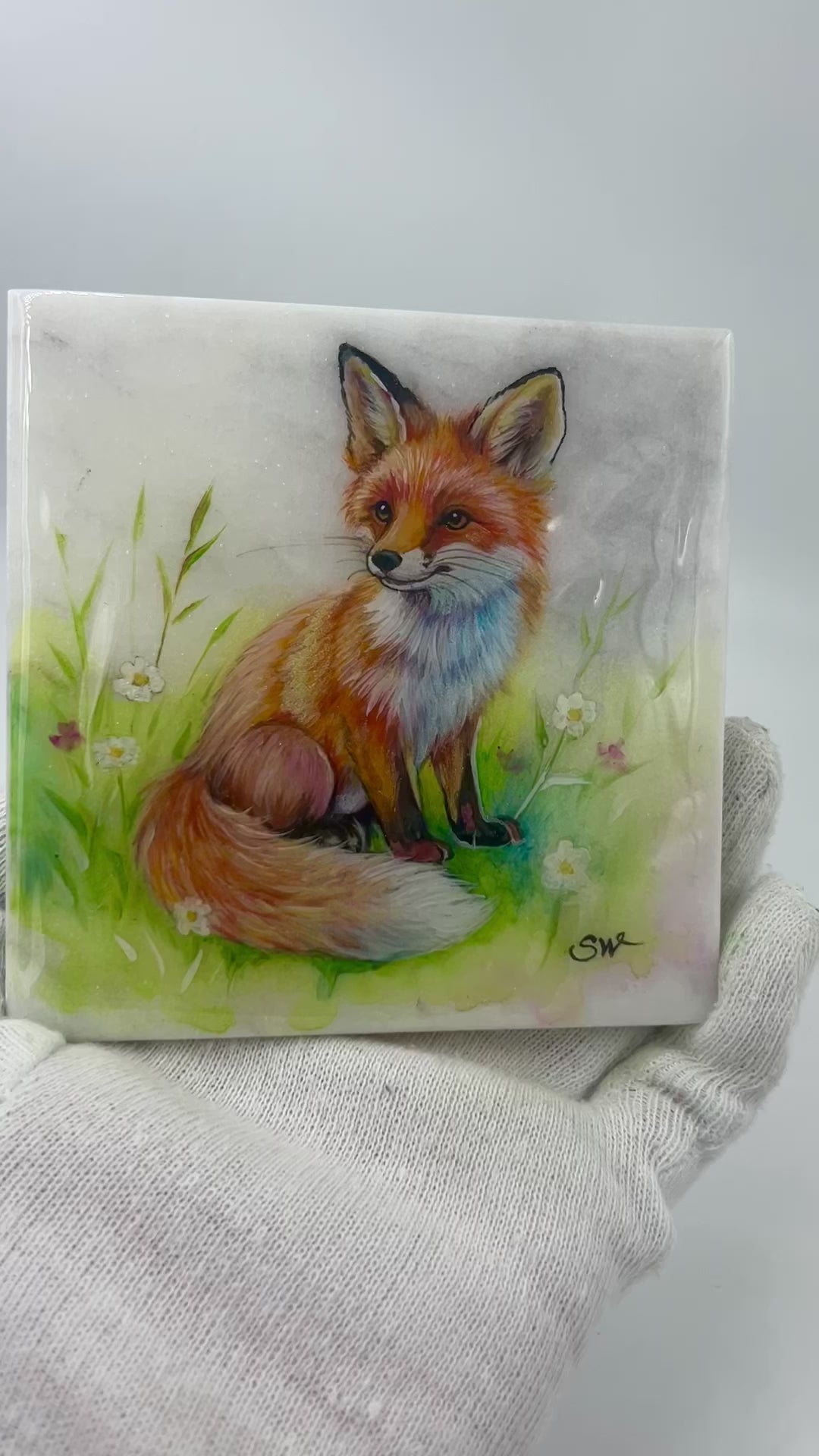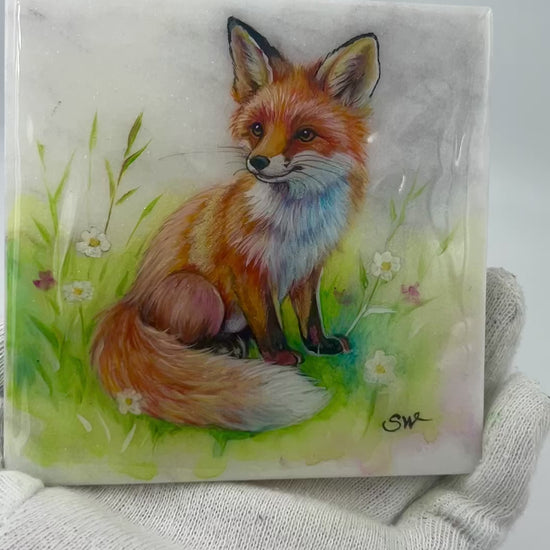 Einzigartig handbemalte Stein-der Fuchs /inklusive Tischstaffelei 10x10cm