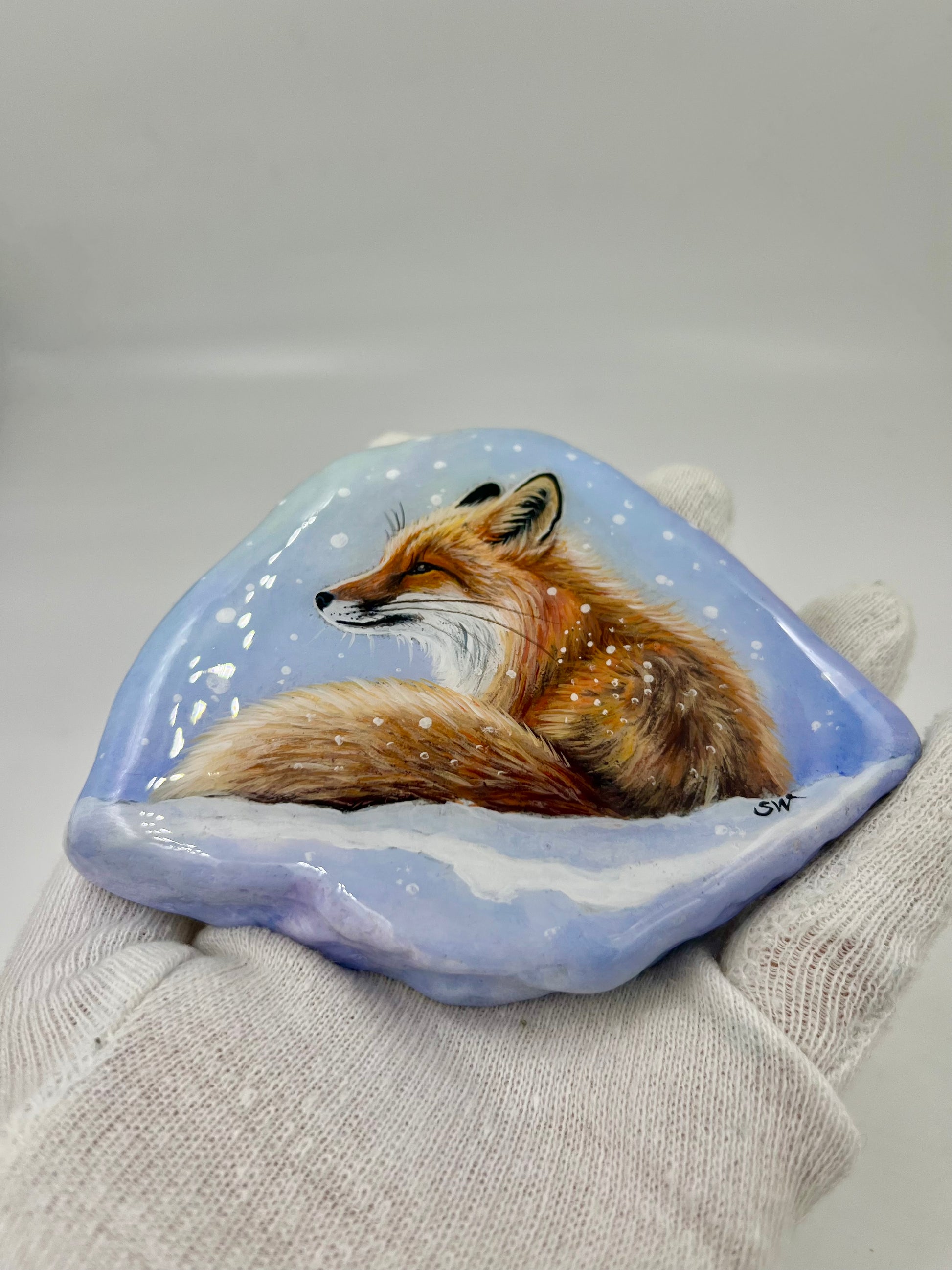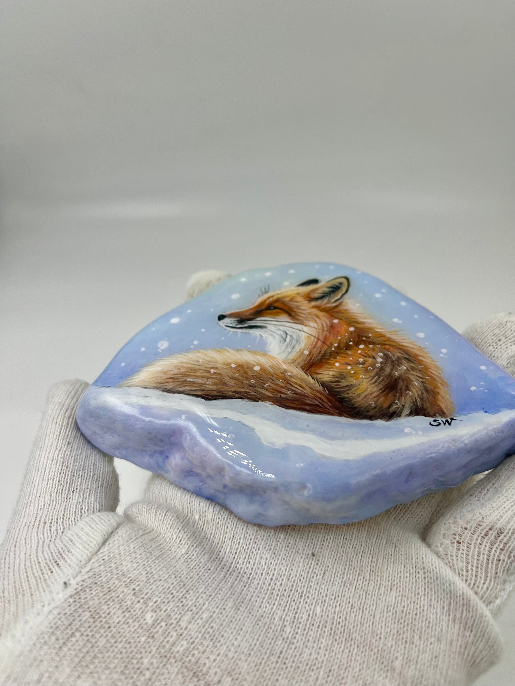 Einzigartig handbemalte Stein/der Fuchs /inklusive Tischstaffelei