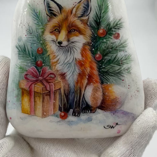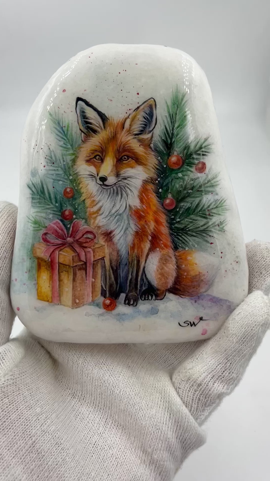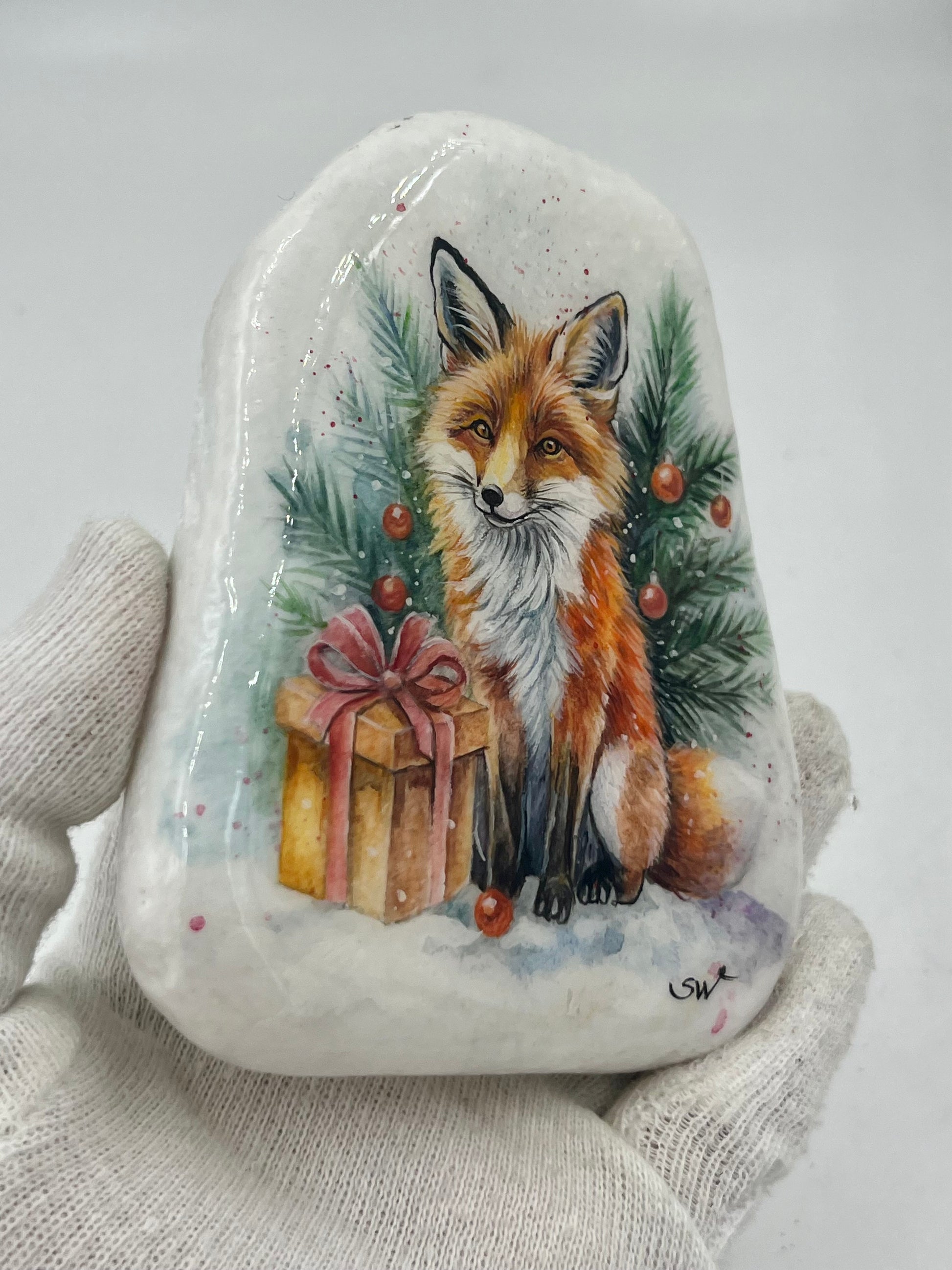 Einzigartig handbemalte Stein/der Fuchs /inklusive Tischstaffelei
