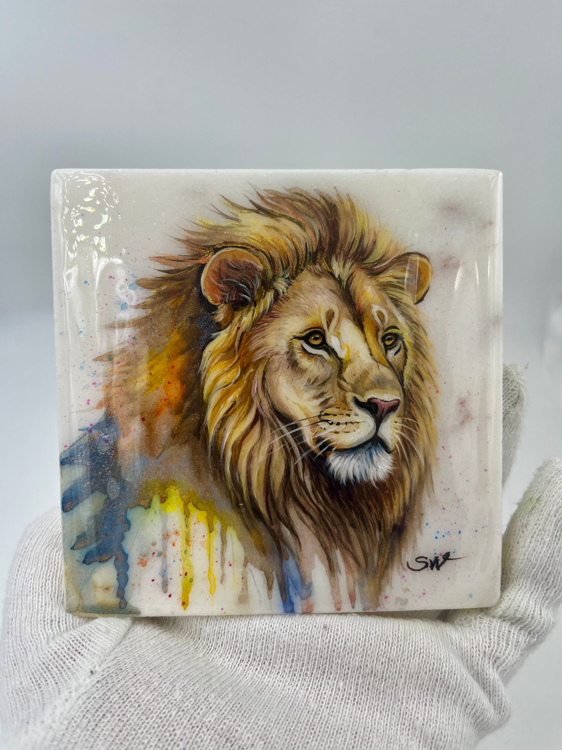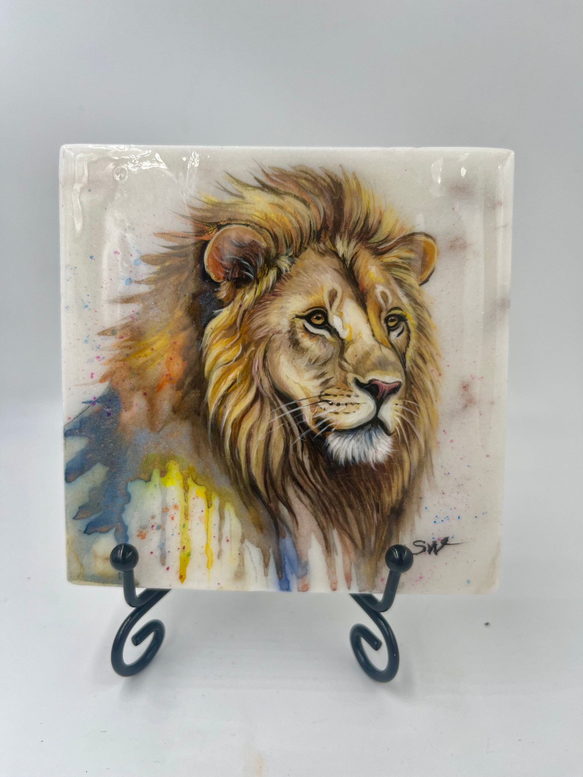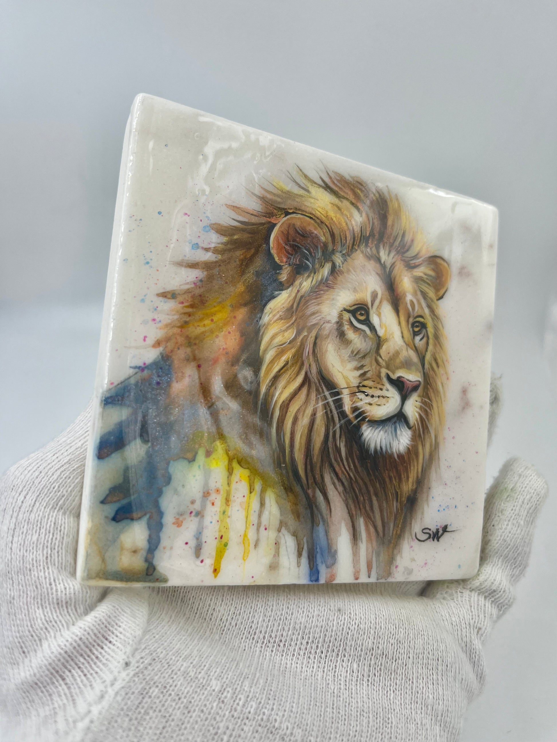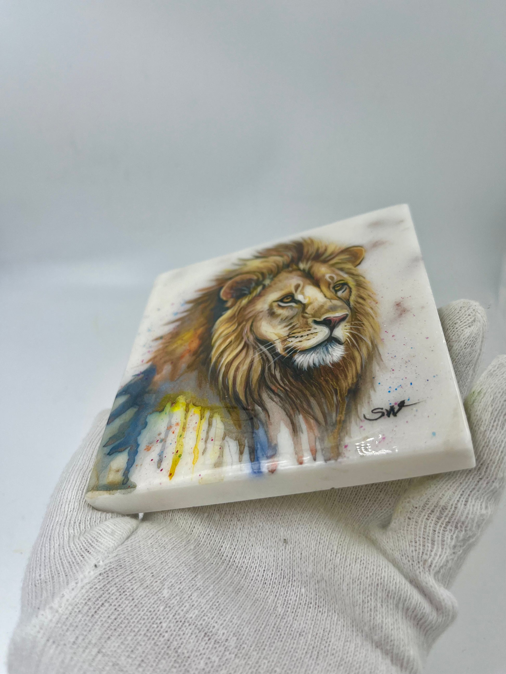 Einzigartig handbemalte Stein-der Löwe /inklusive Tischstaffelei