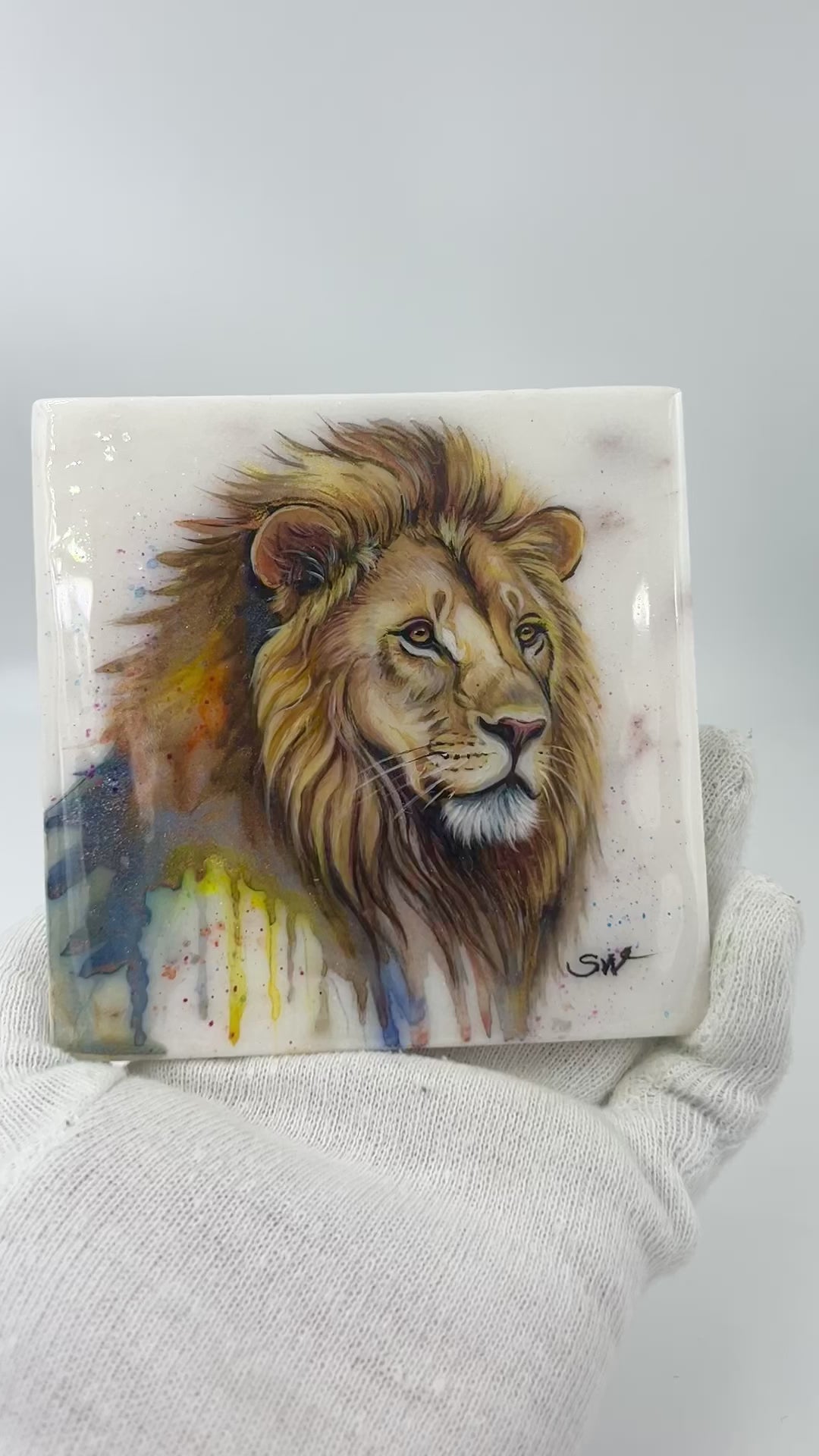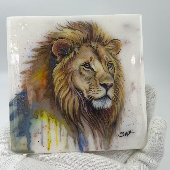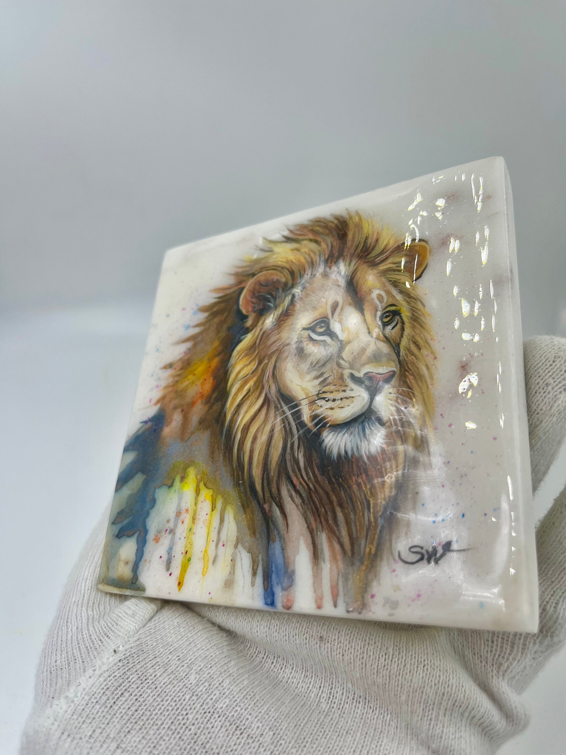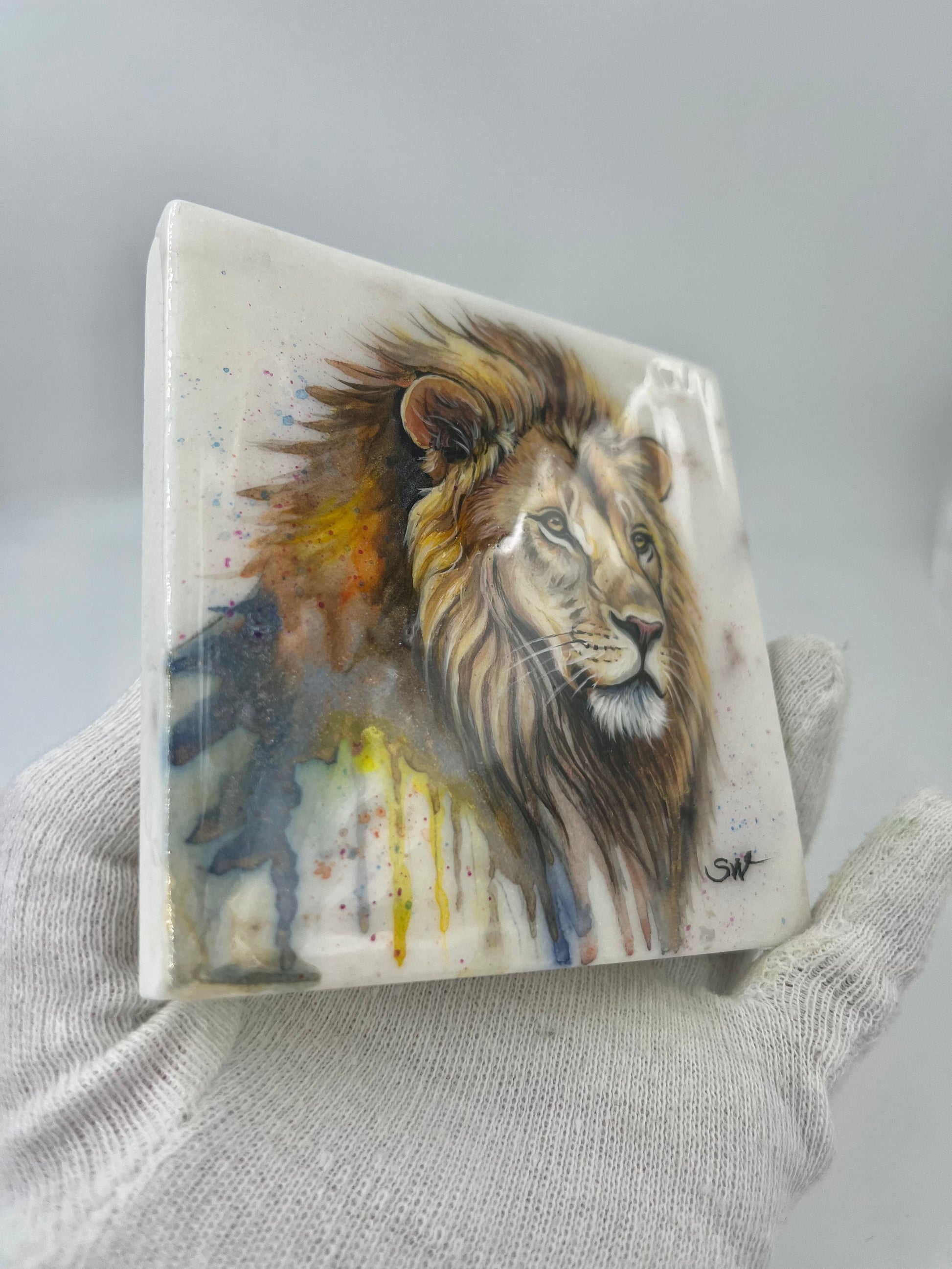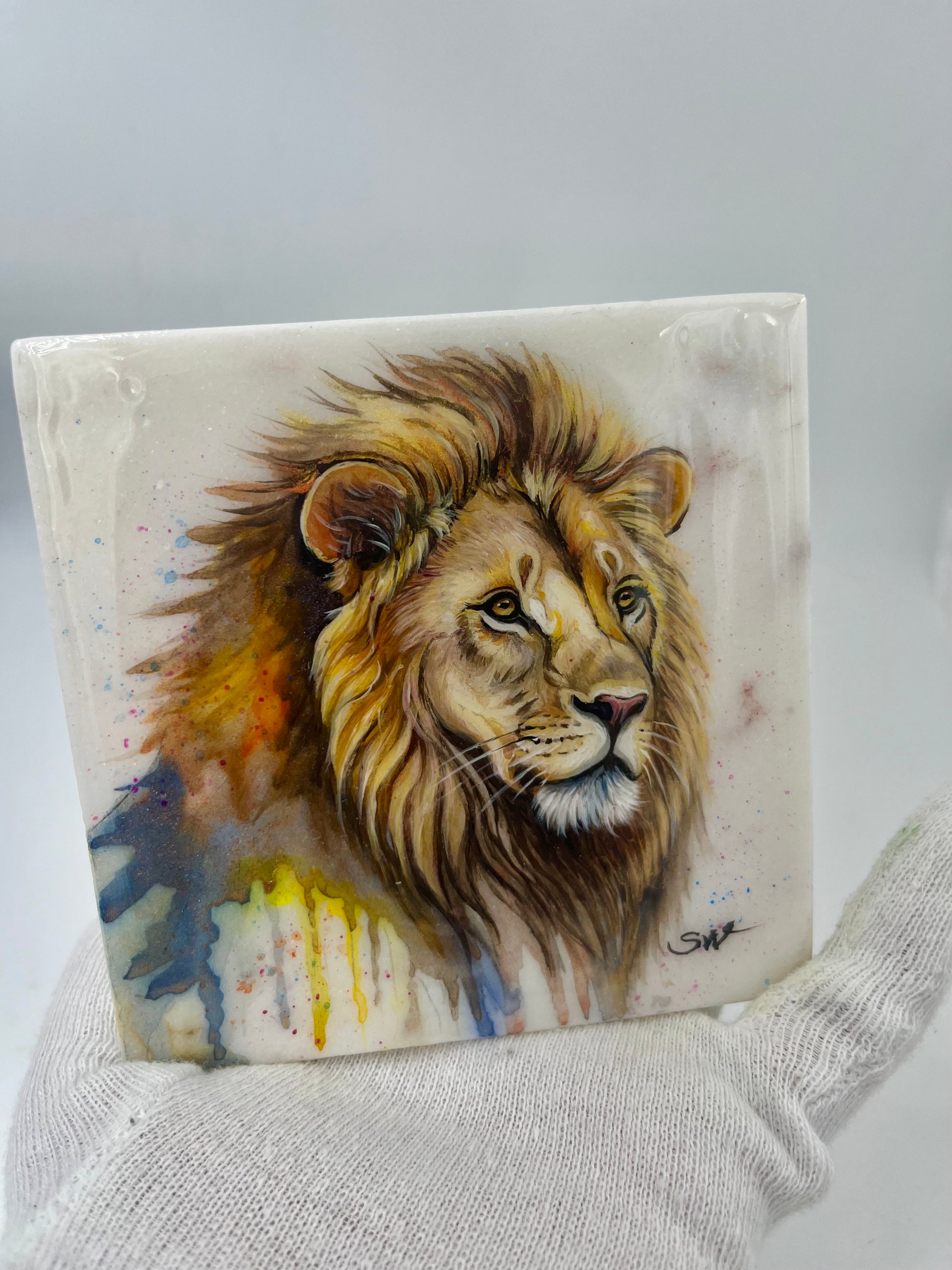 Einzigartig handbemalte Stein-der Löwe /inklusive Tischstaffelei