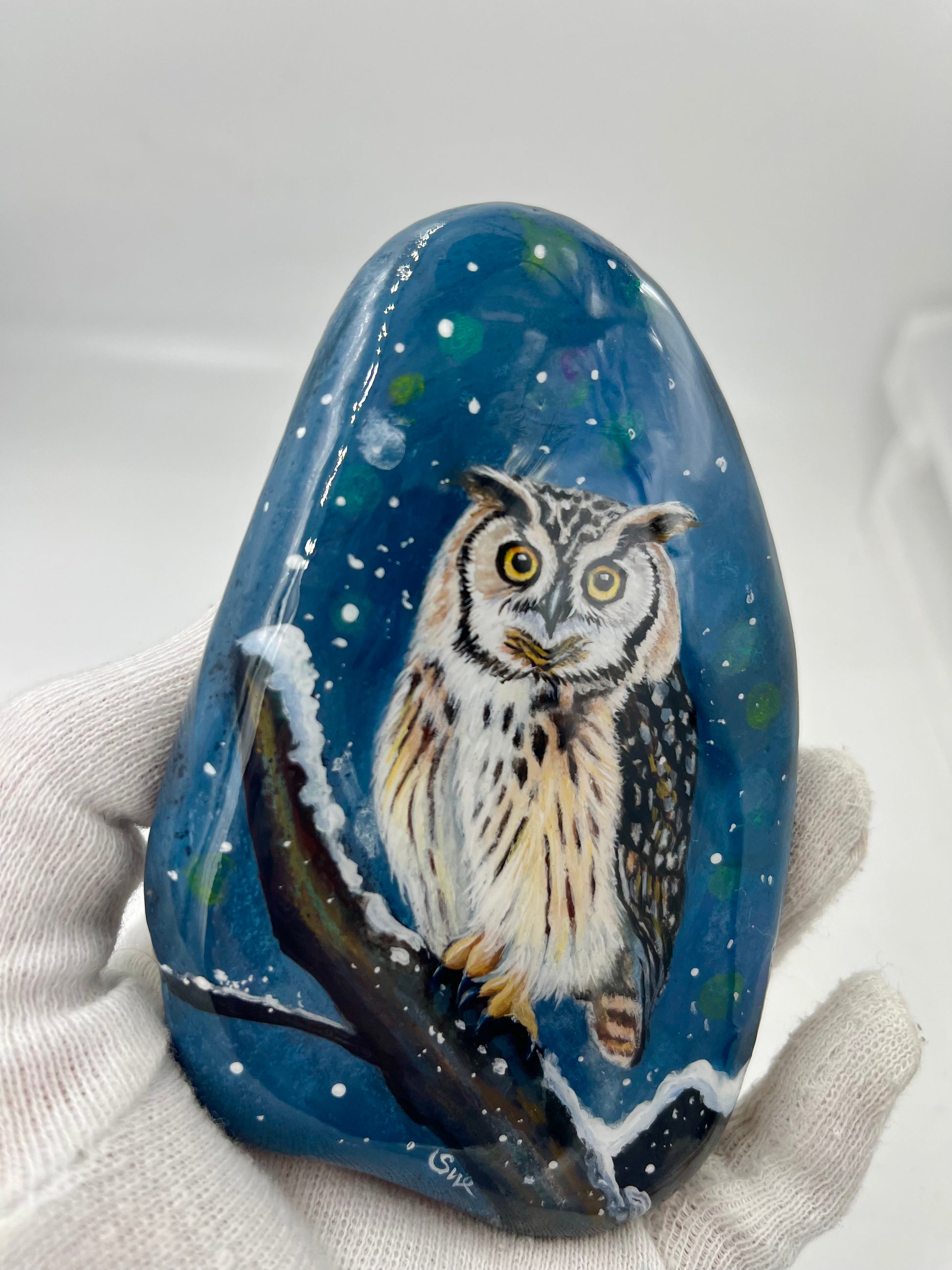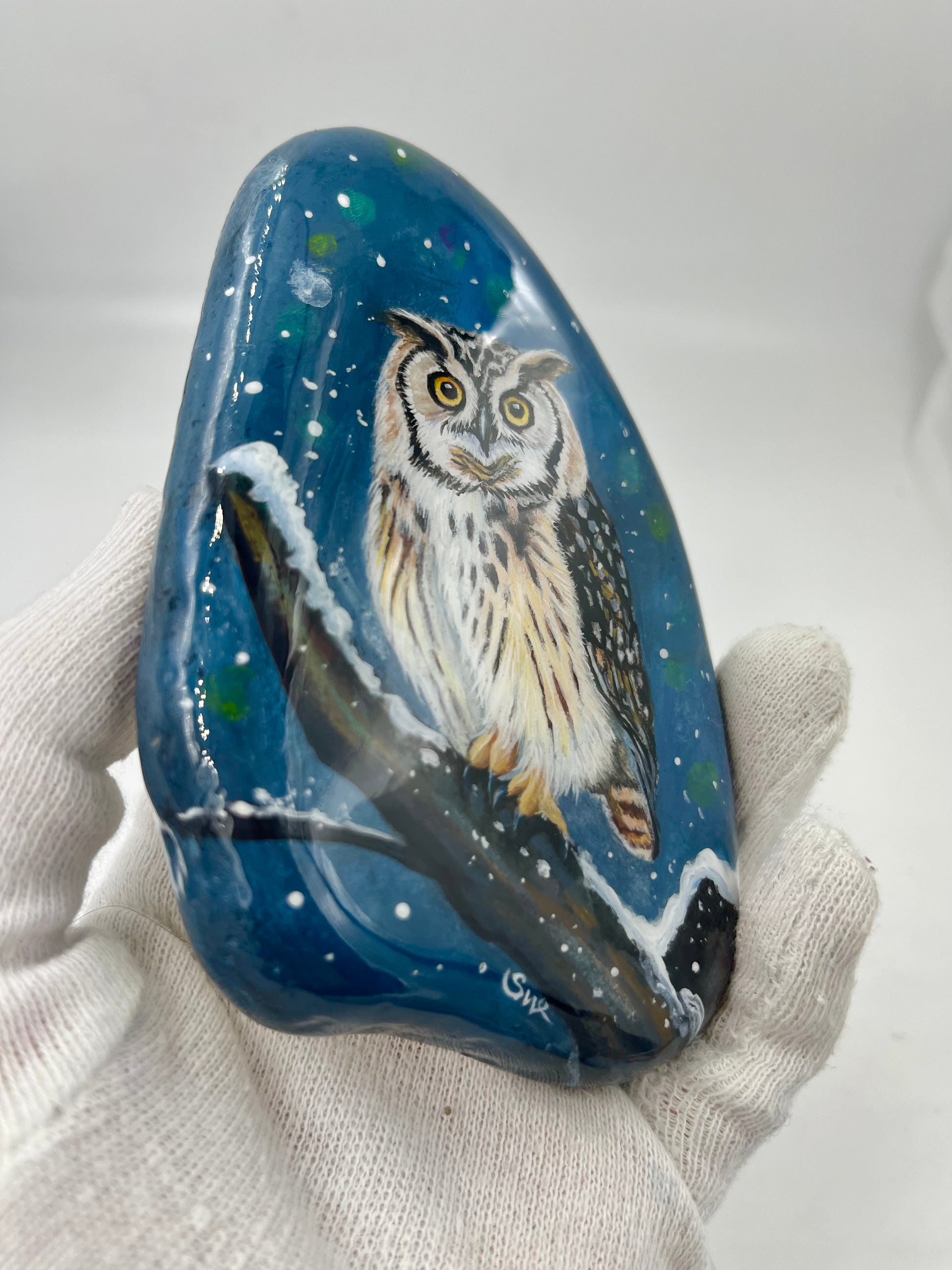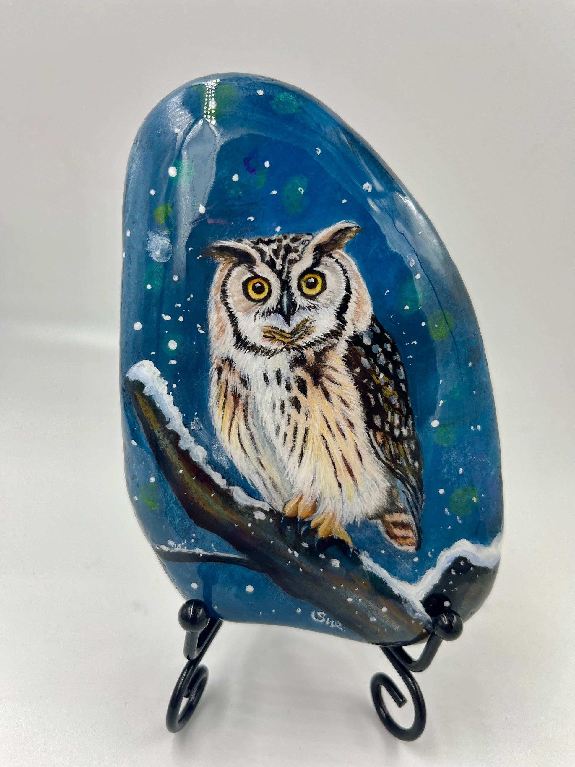 Einzigartig handbemalte Stein/die Eule /inklusive Tischstaffelei