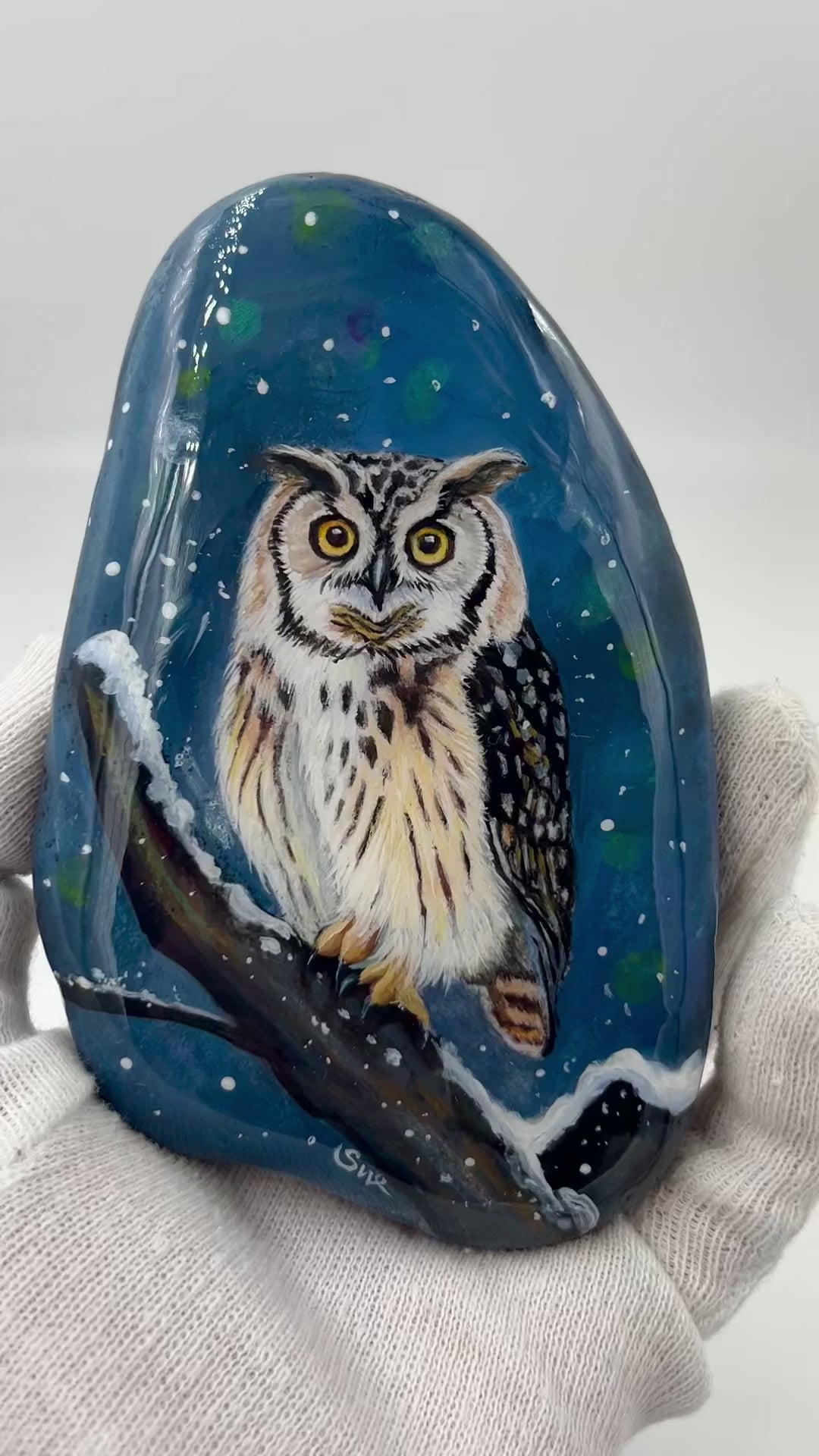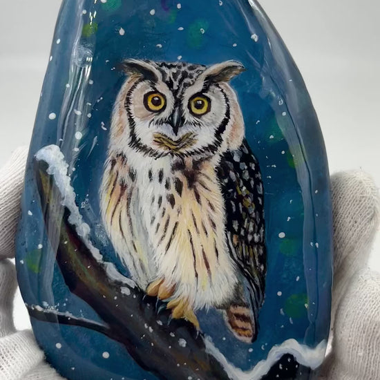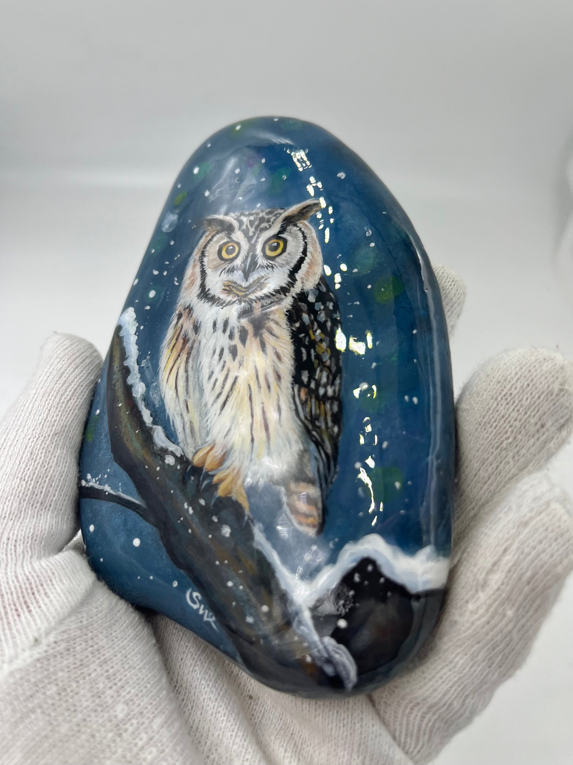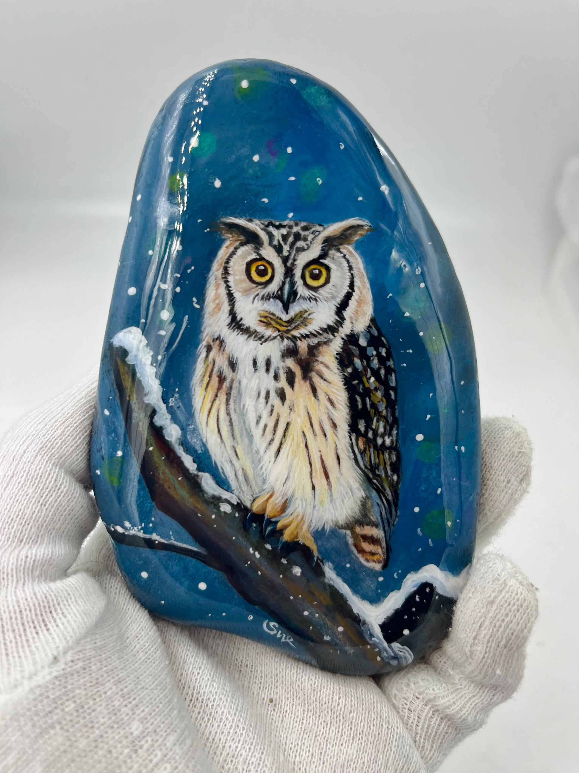 Einzigartig handbemalte Stein/die Eule /inklusive Tischstaffelei