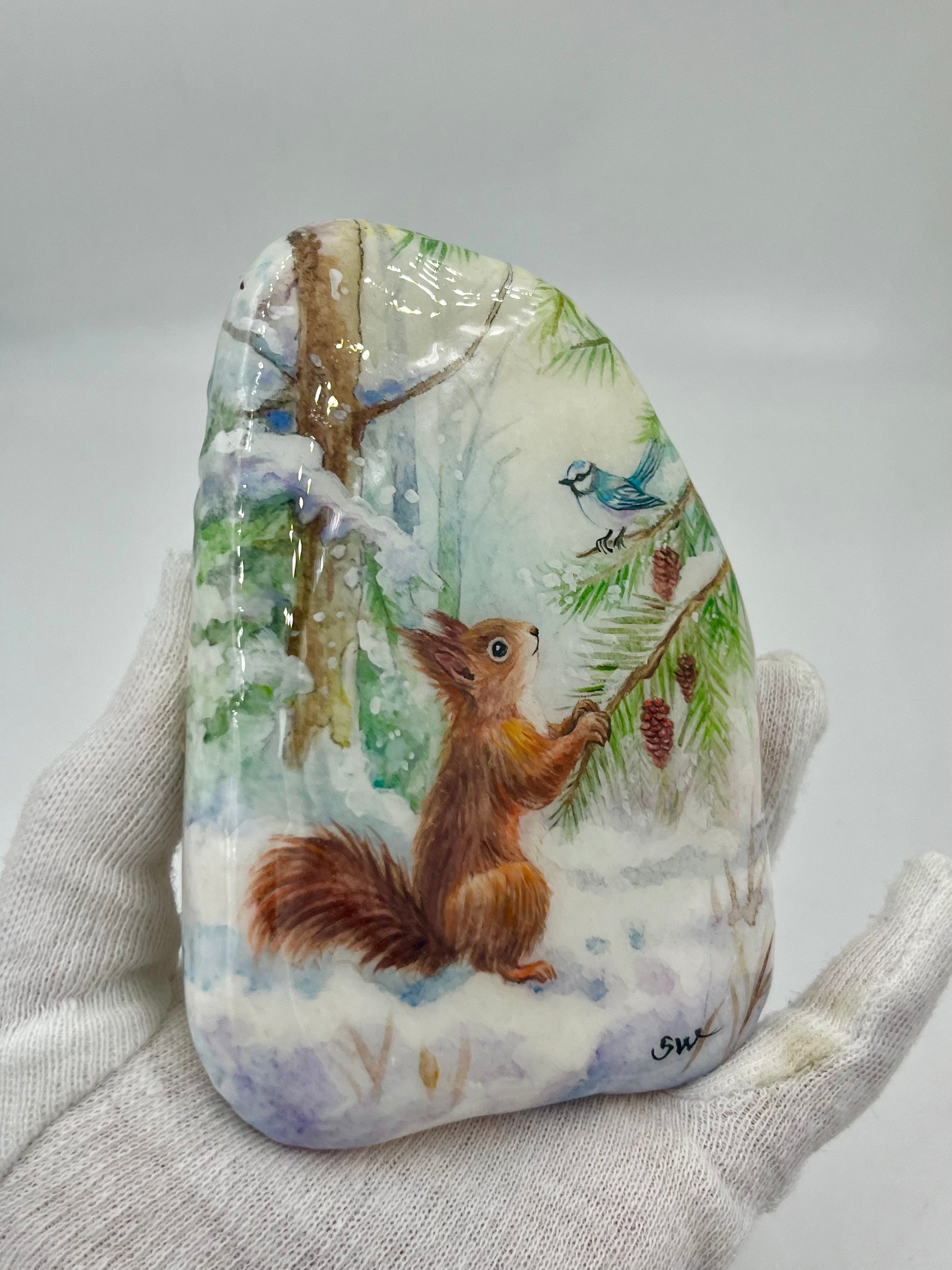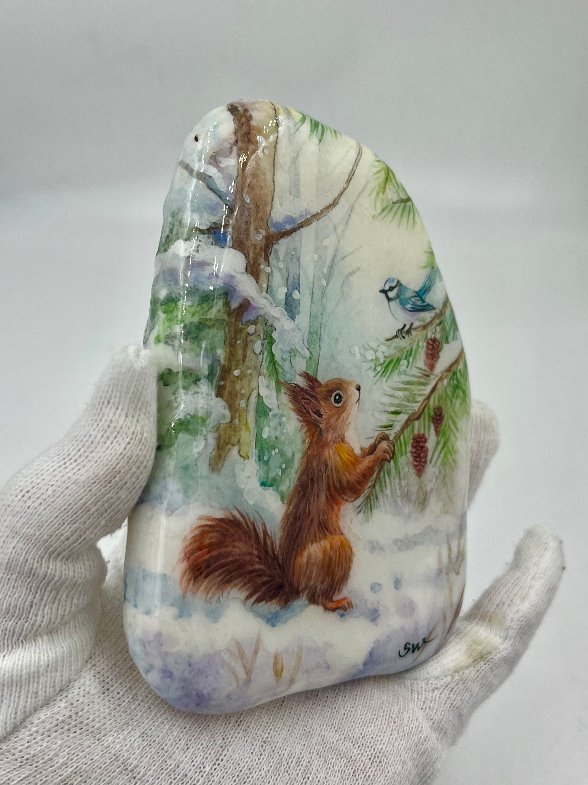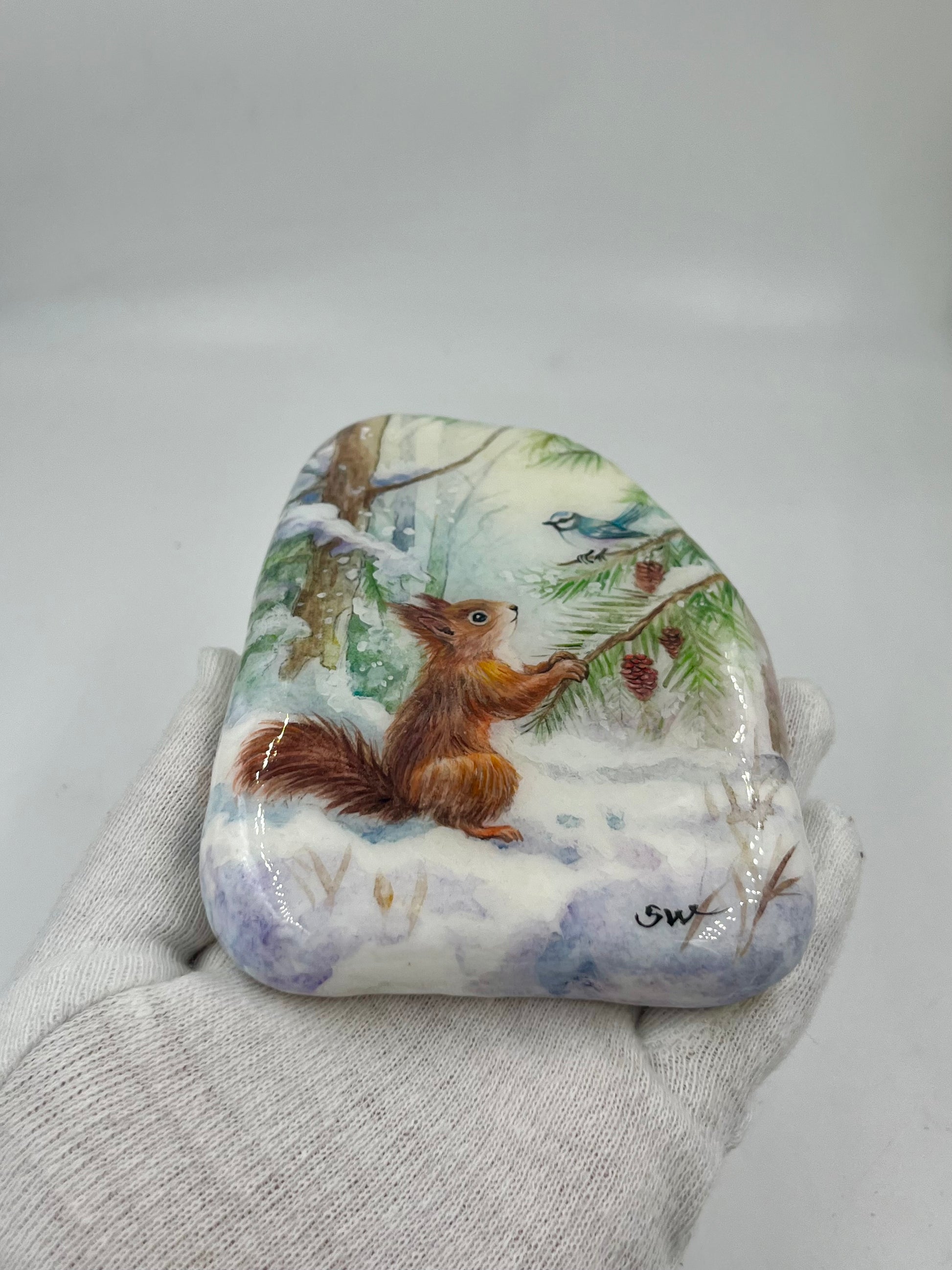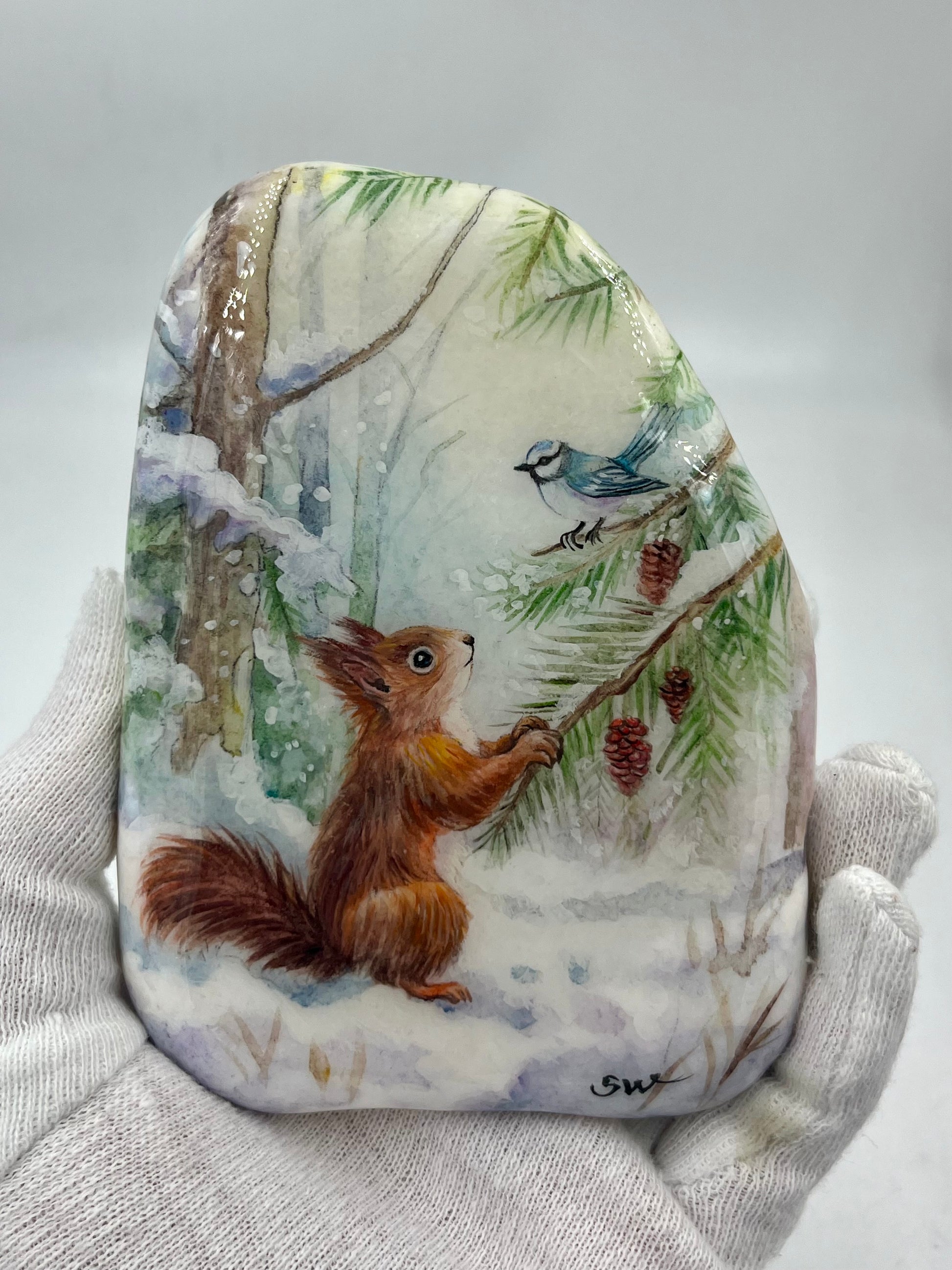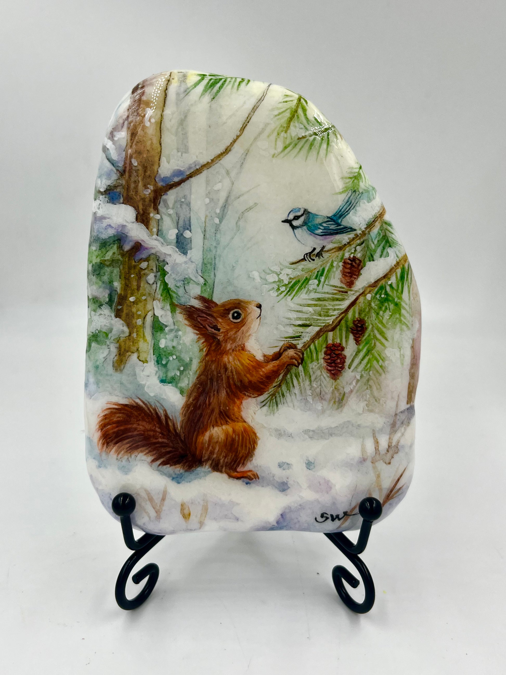 Einzigartig handbemalte Stein/Winterliche Szenerie /inklusive Tischstaffelei
