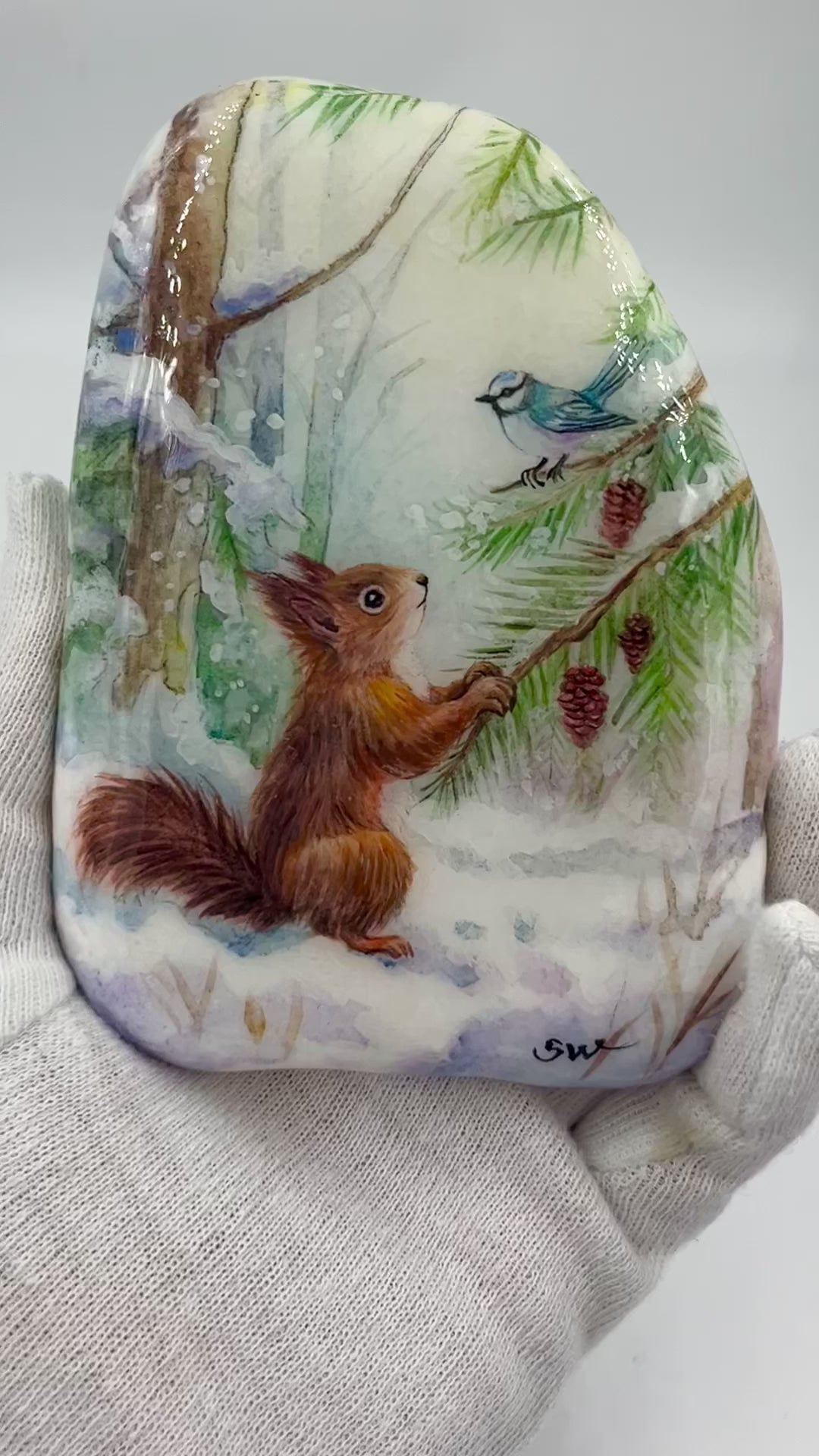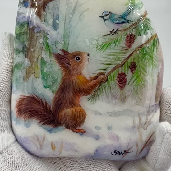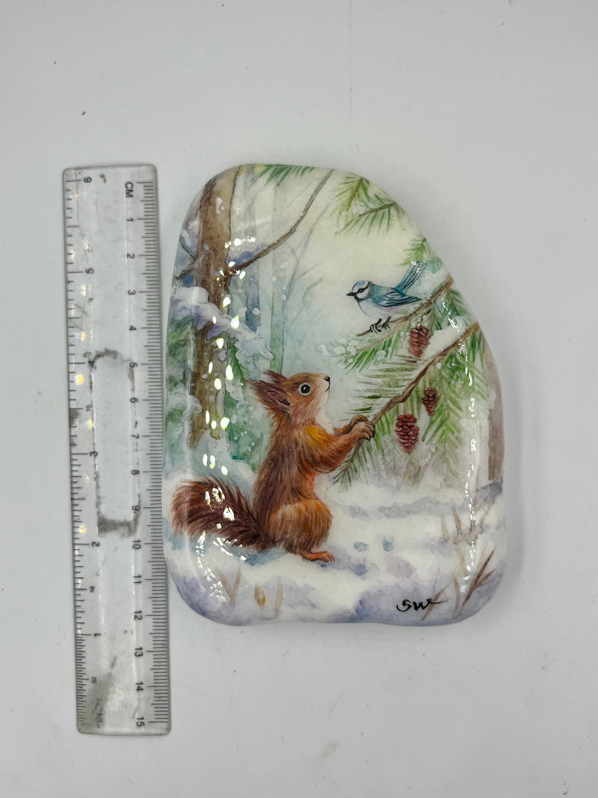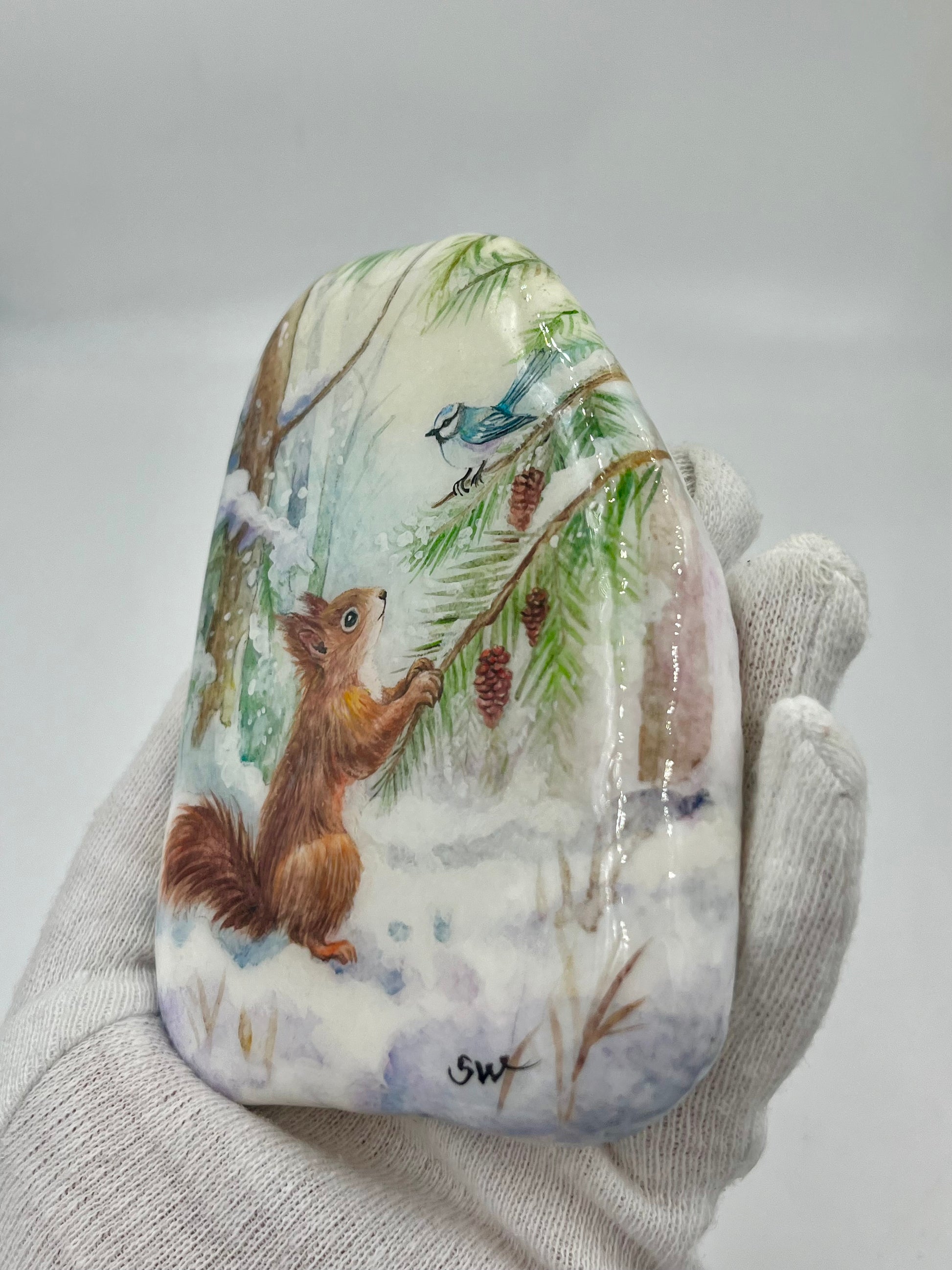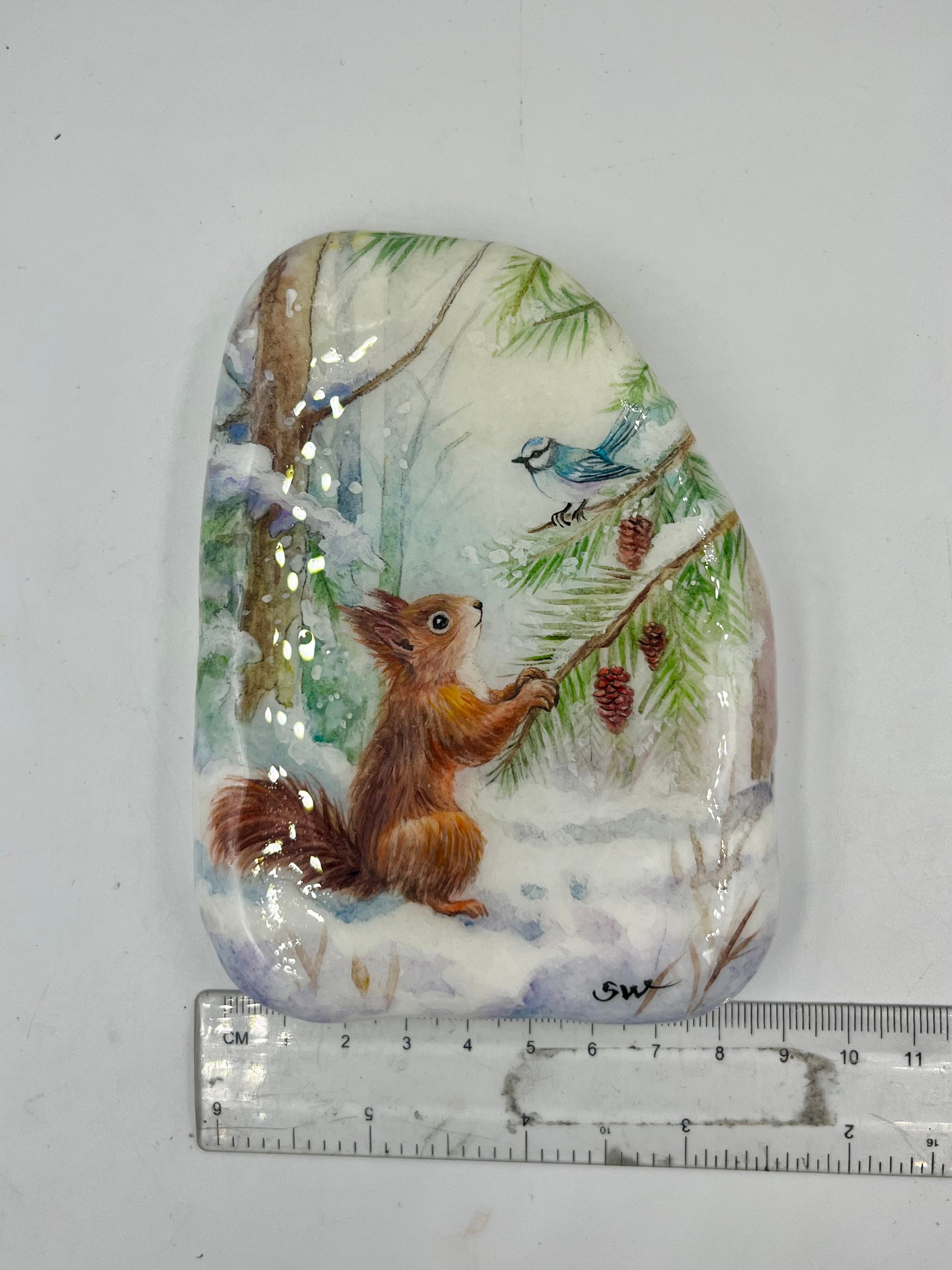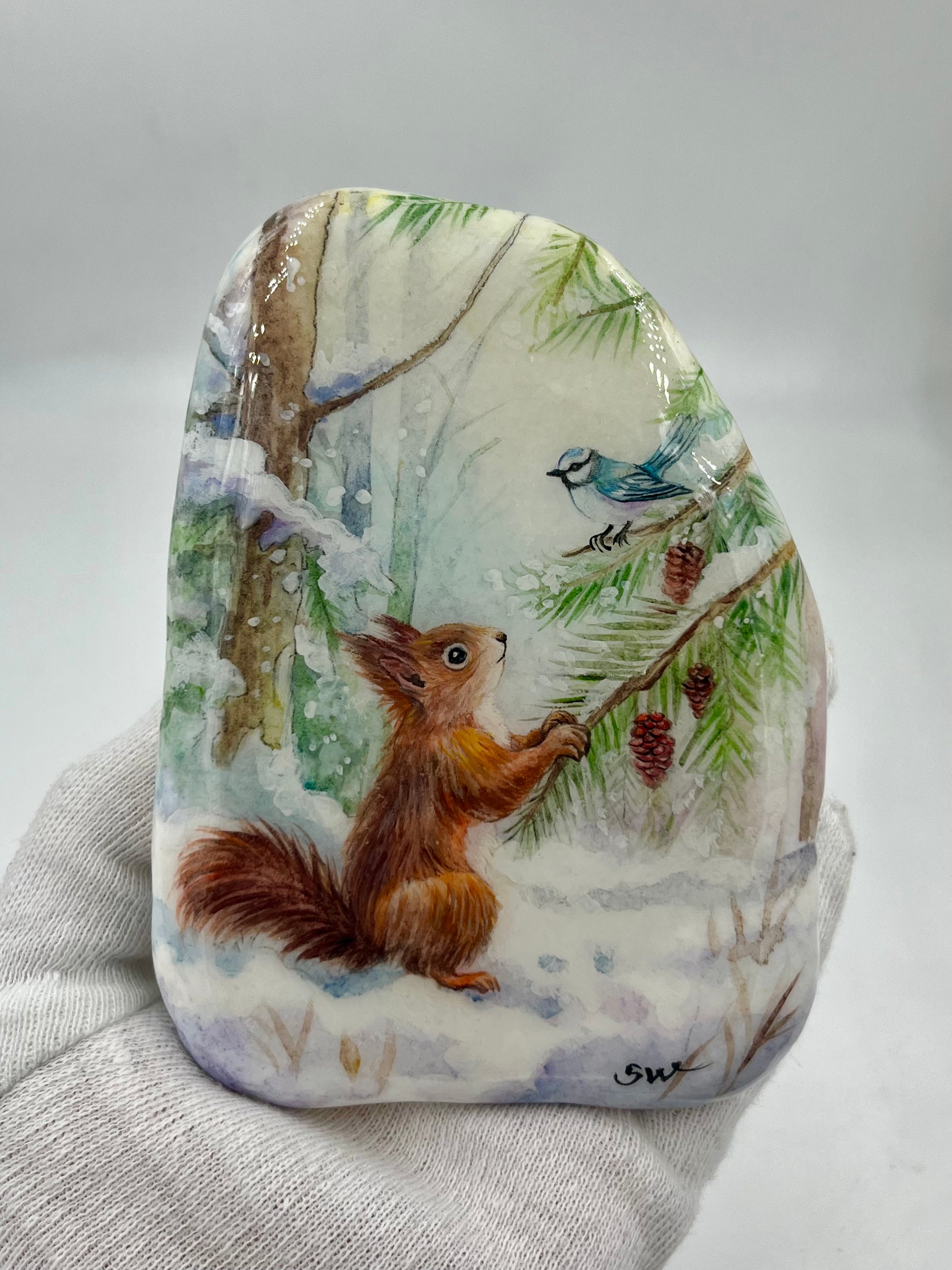 Einzigartig handbemalte Stein/Winterliche Szenerie /inklusive Tischstaffelei