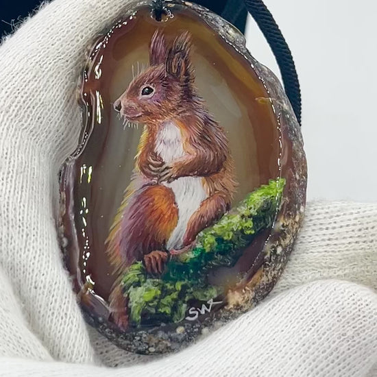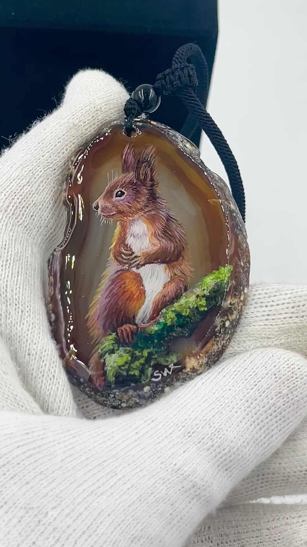Einzigartige Anhänger /Das Eichhörnchen /Achat/Hand bemalt Juwelen und tragbare Kunst /Natur Schmuck
