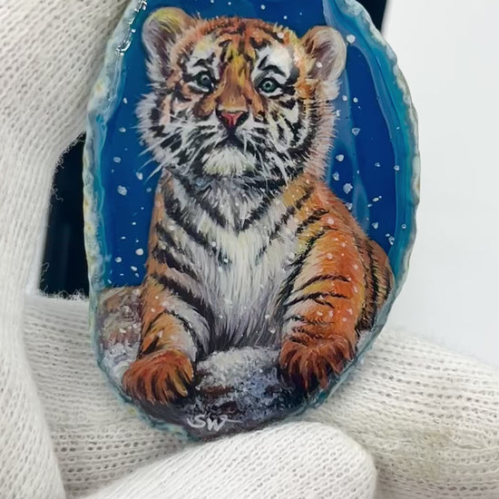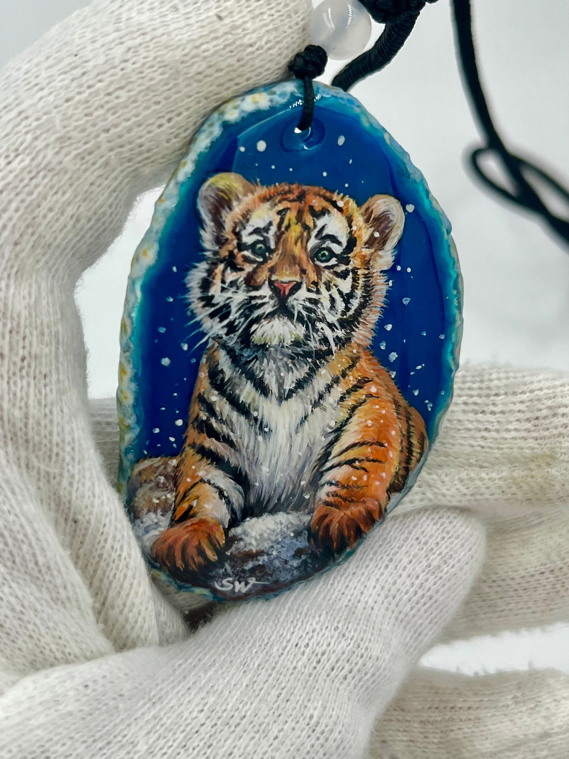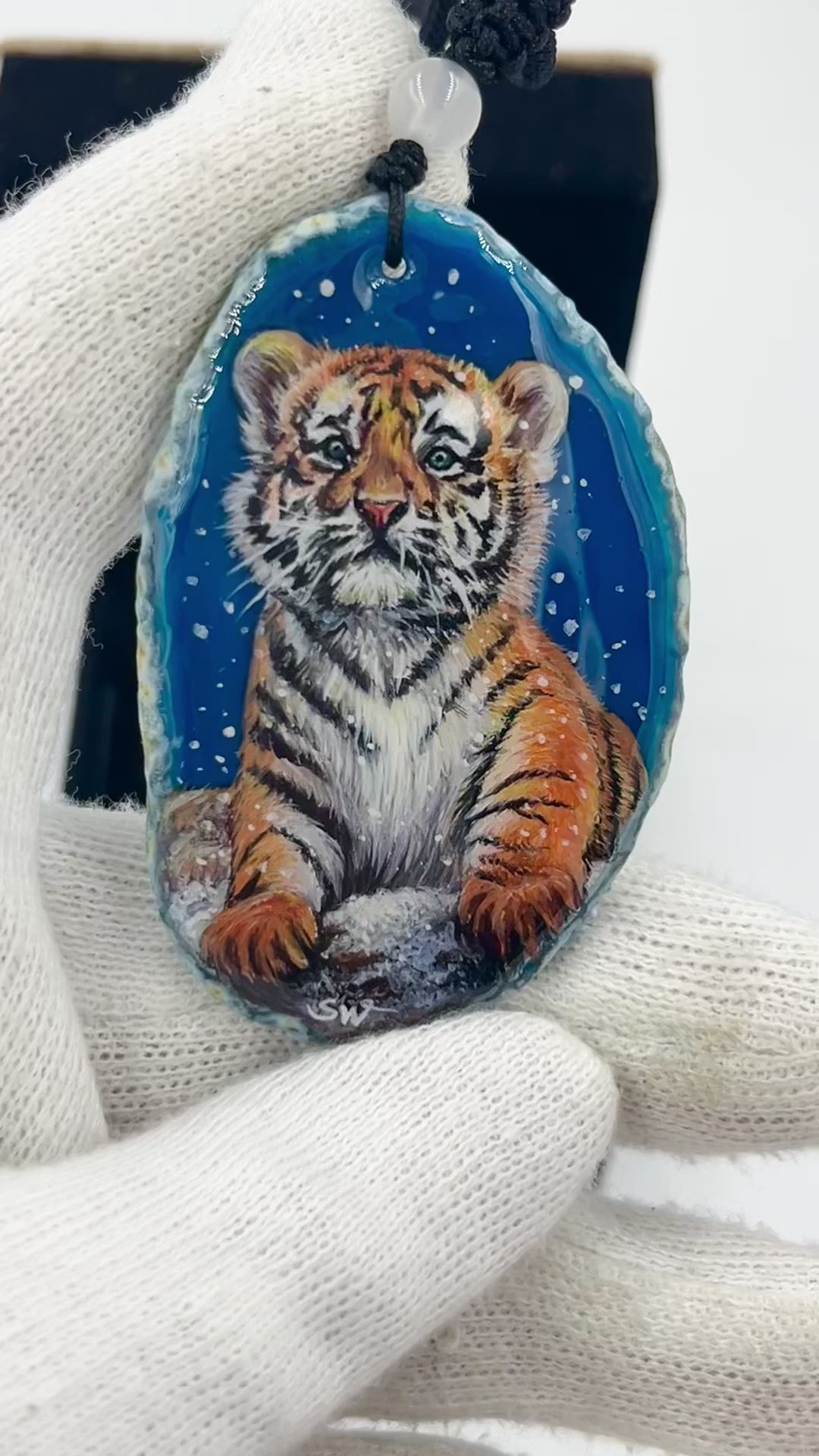 Einzigartige Anhänger /Das Tigerbaby /Achat/Hand bemalt Juwelen und tragbare Kunst /Natur Schmuck