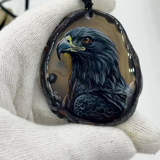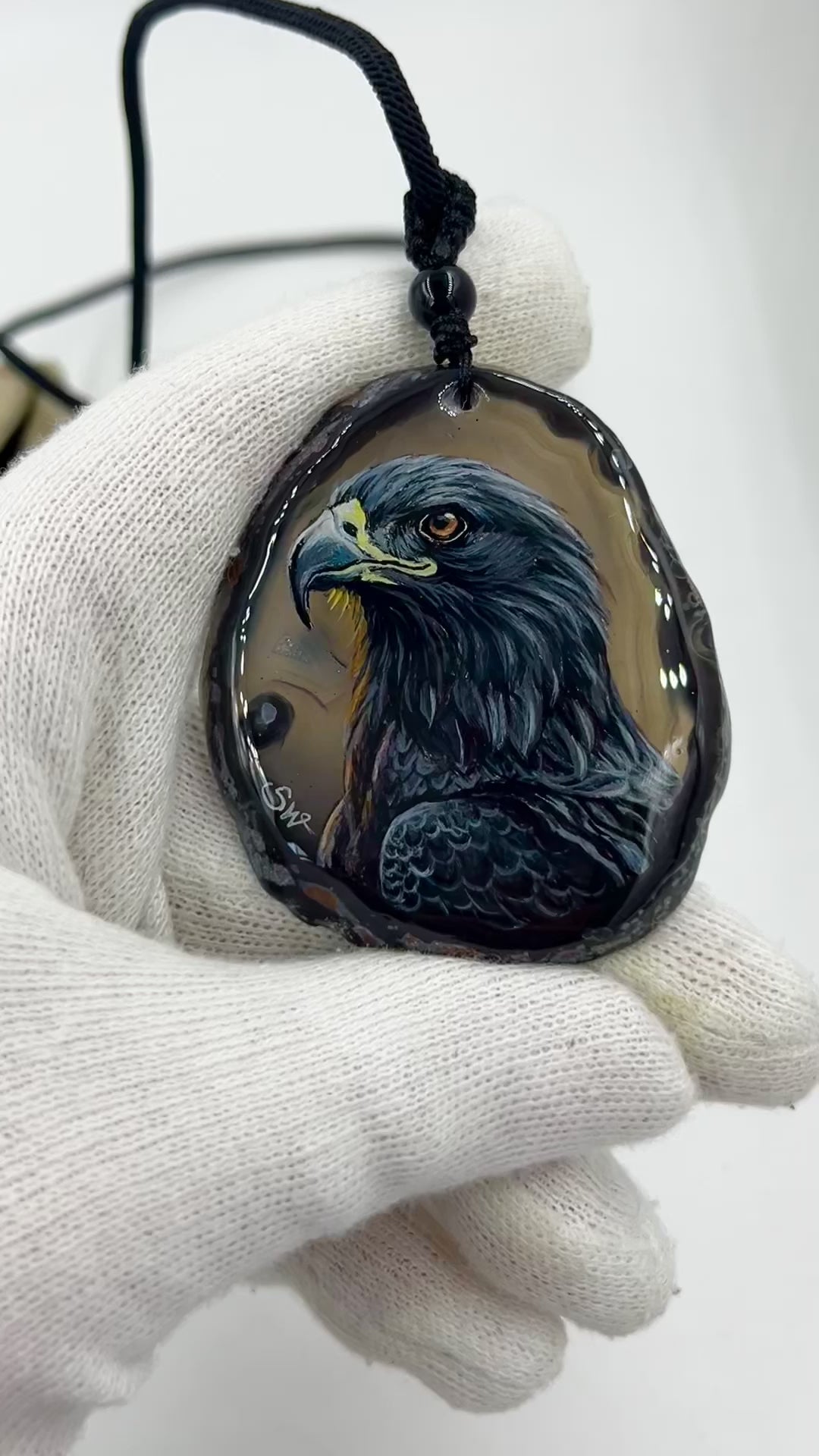 Einzigartige Anhänger /Der Adler/Achat/Hand bemalt Juwelen und tragbare Kunst /Natur Schmuck