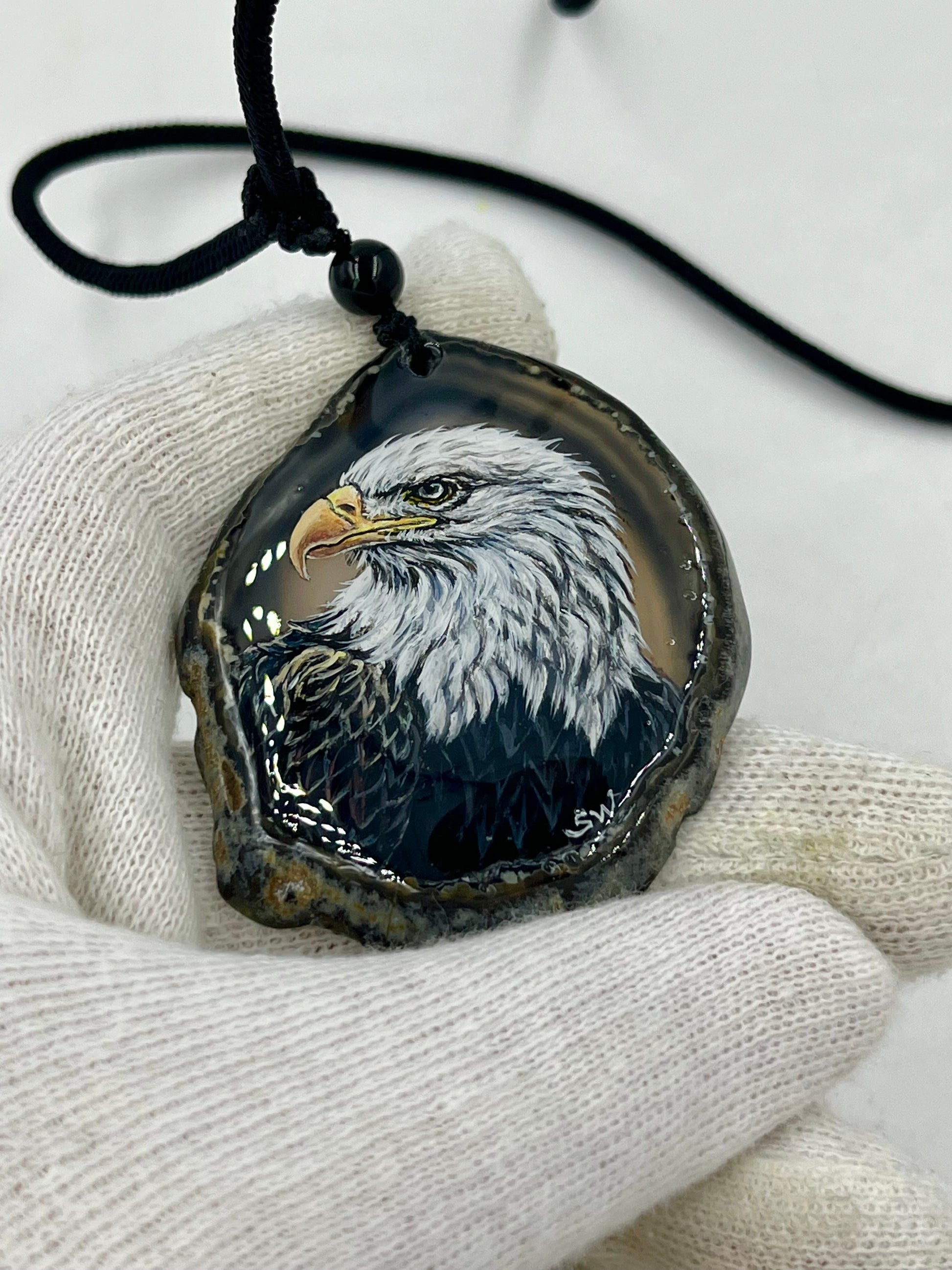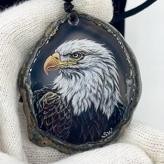 Einzigartige Anhänger /Der Adler /Achat/Hand bemalt Juwelen und tragbare Kunst /Natur Schmuck