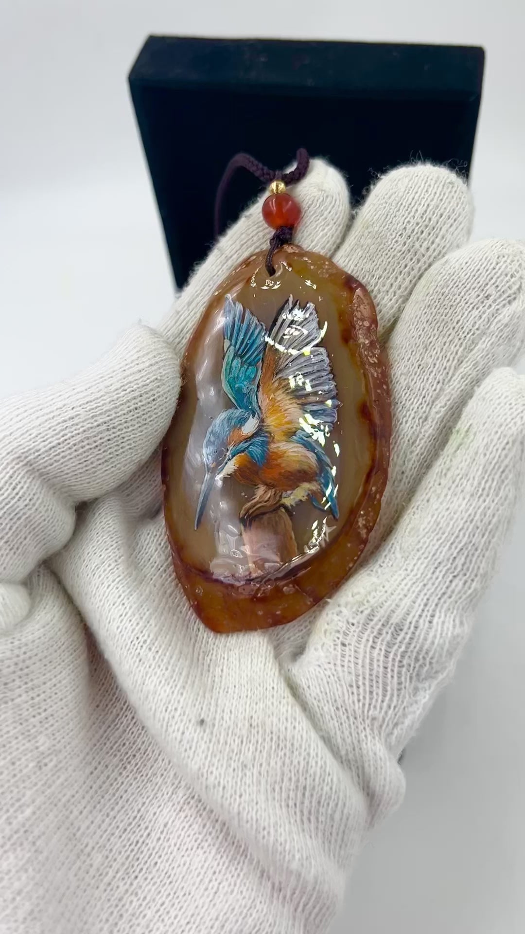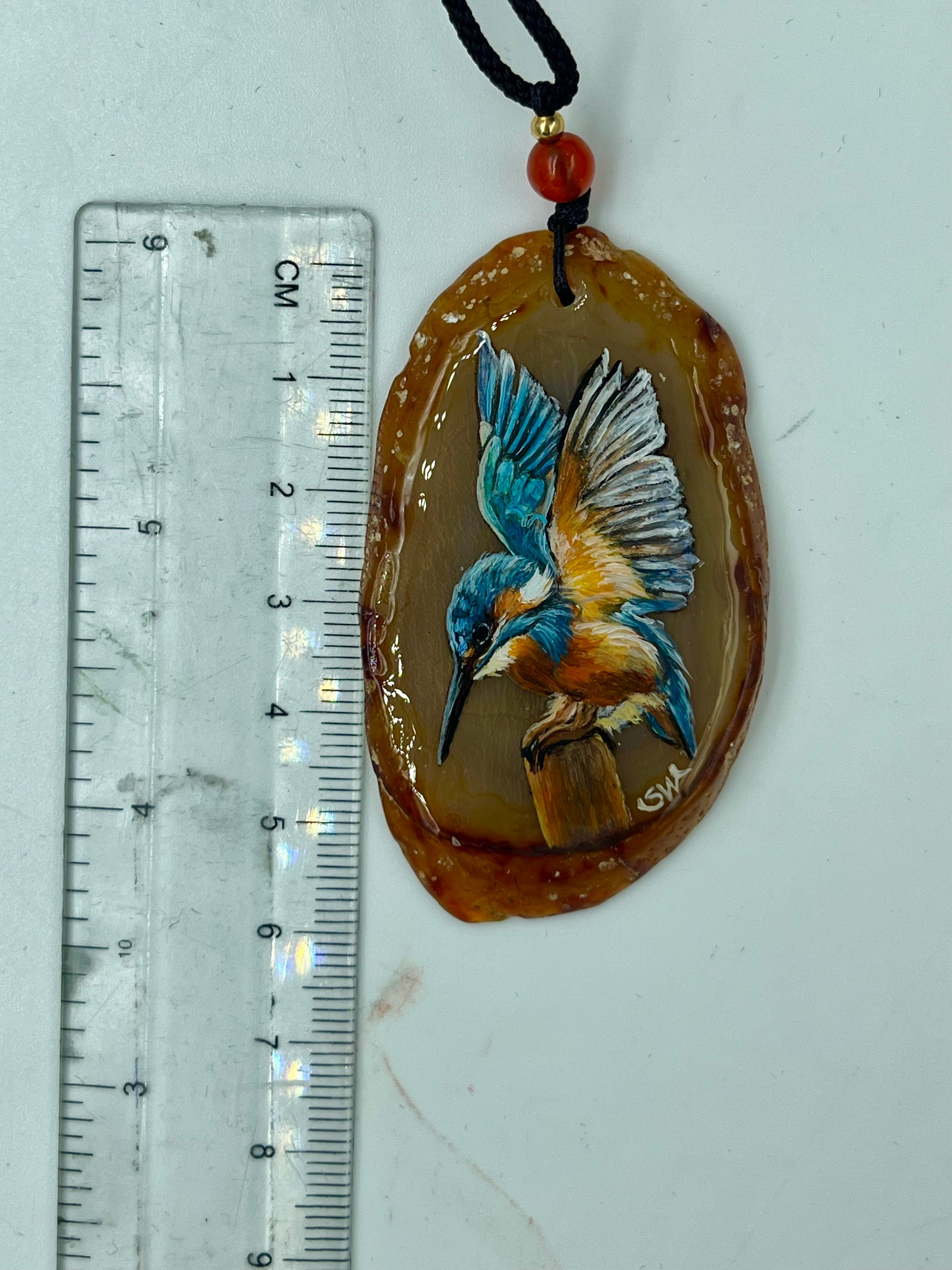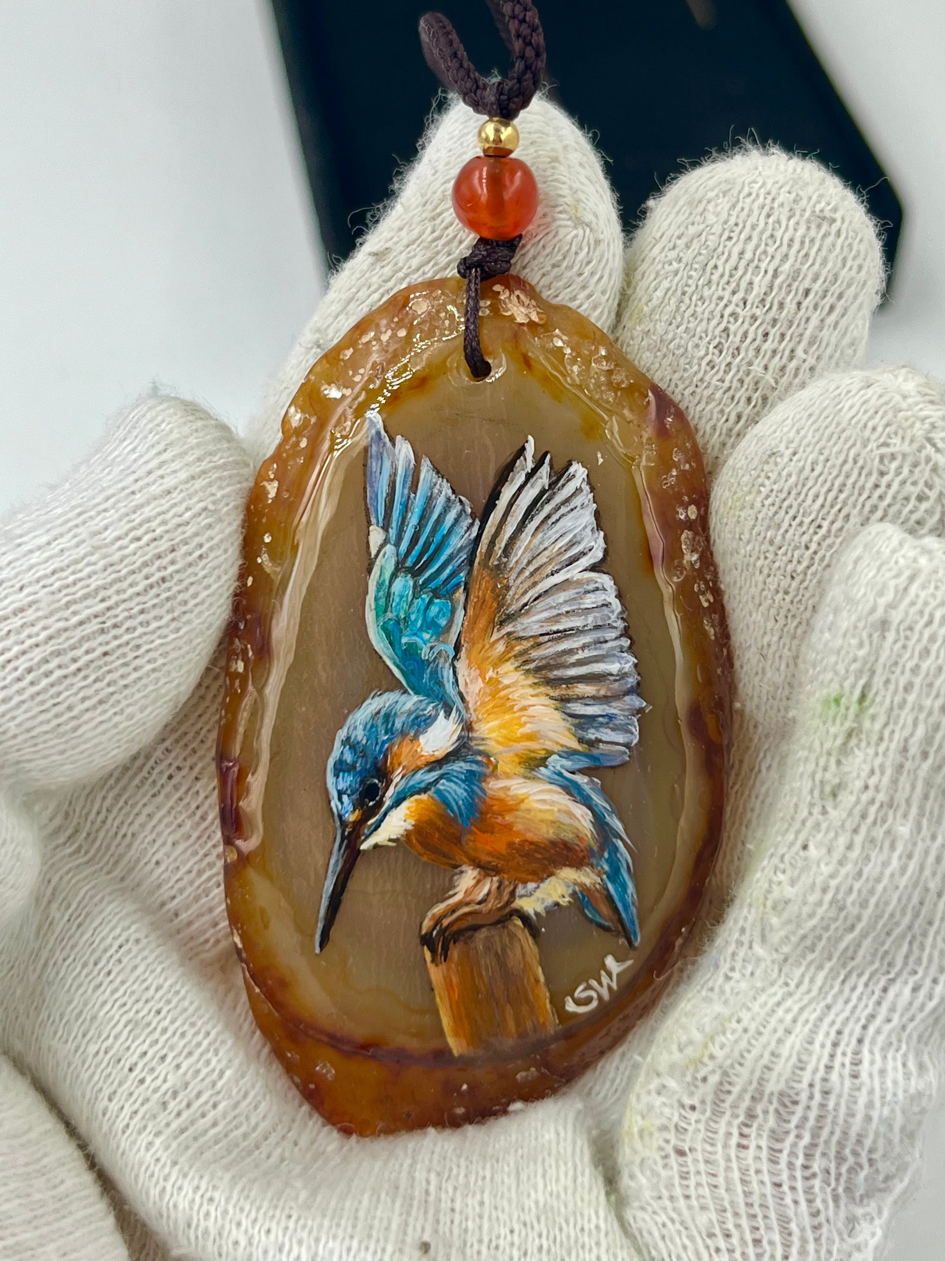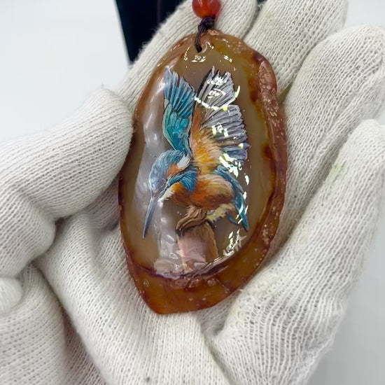 Einzigartige Anhänger /der Eisvogel/Achat/Hand bemalt