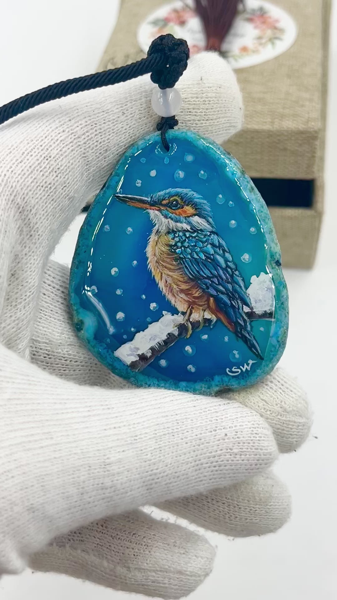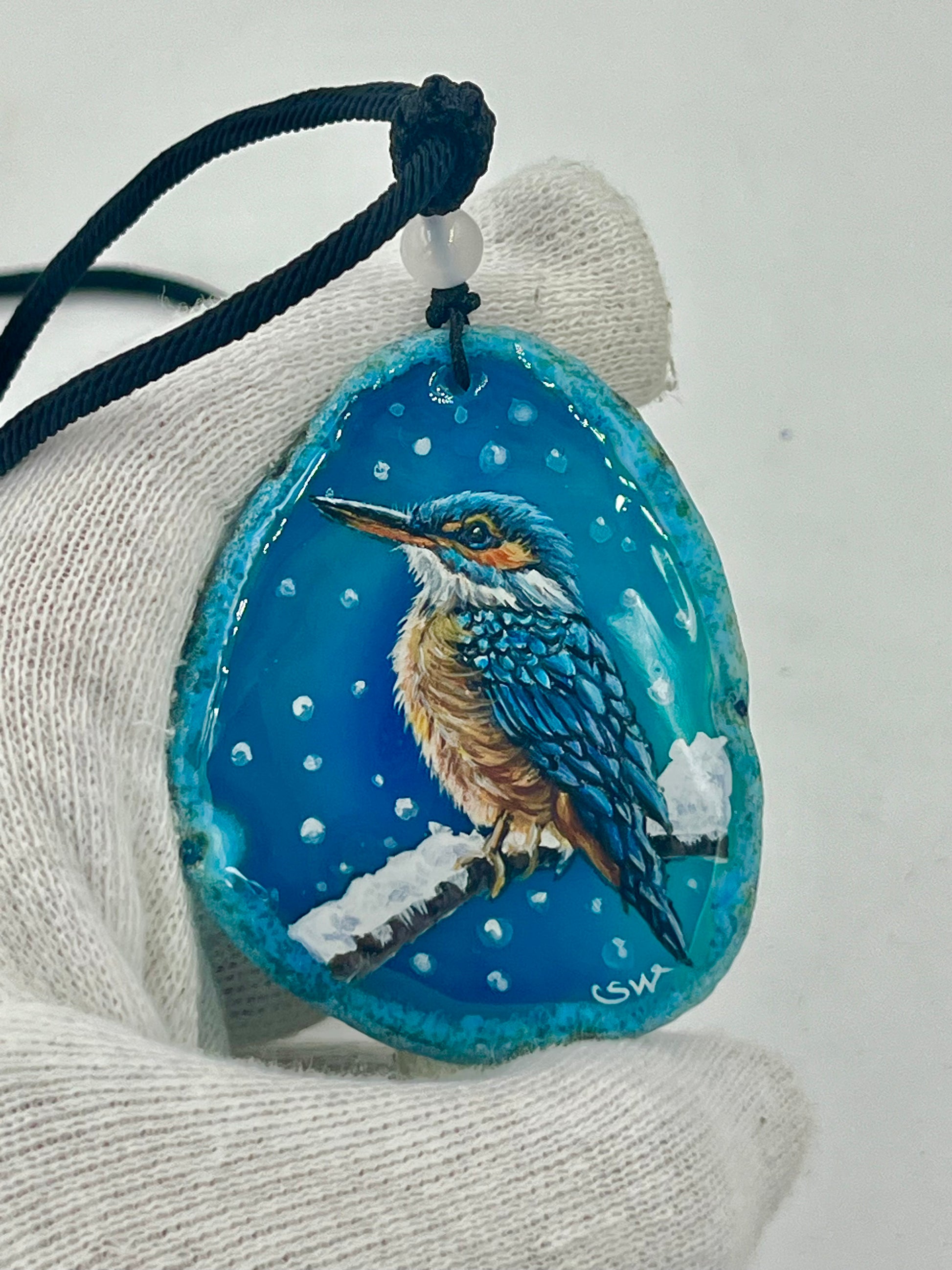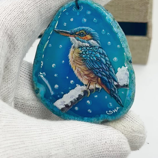 Einzigartige Anhänger /Der Eisvogel/Achat/Hand bemalt Juwelen und tragbare Kunst /Natur Schmuck