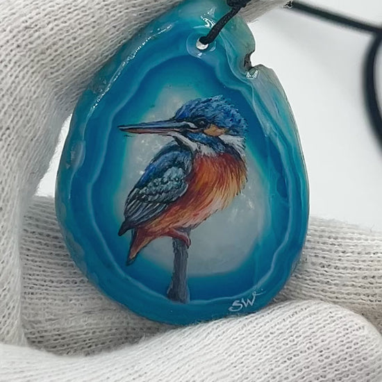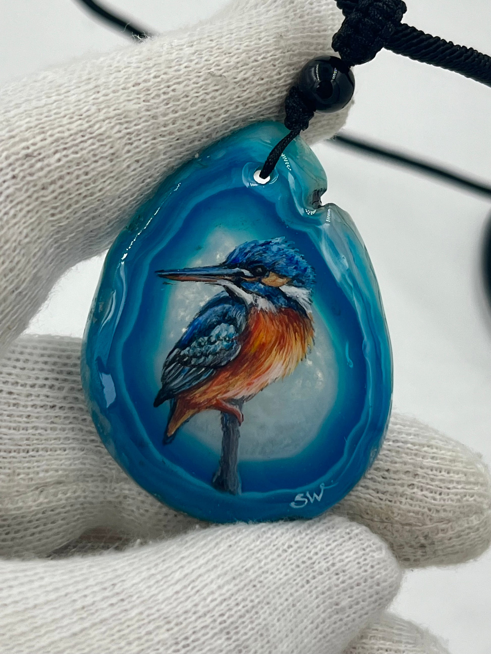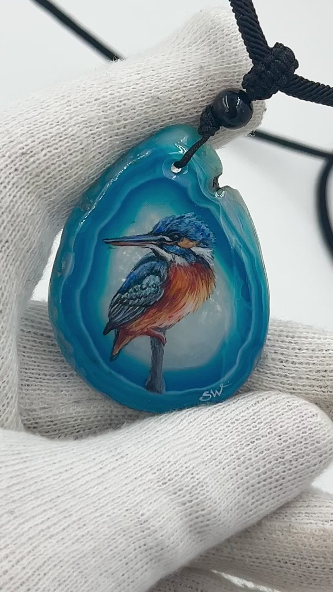 Einzigartige Anhänger /Der Eisvogel/Achat/Hand bemalt Juwelen und tragbare Kunst /Natur Schmuck