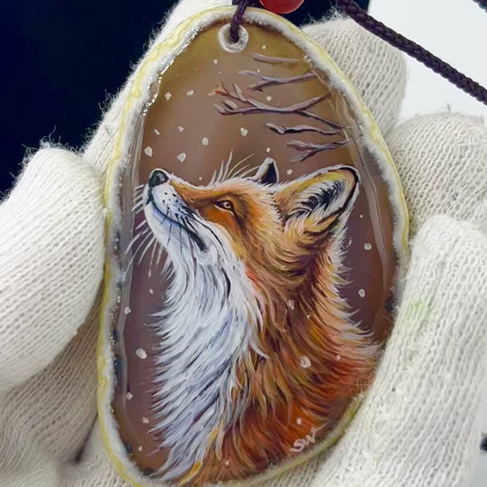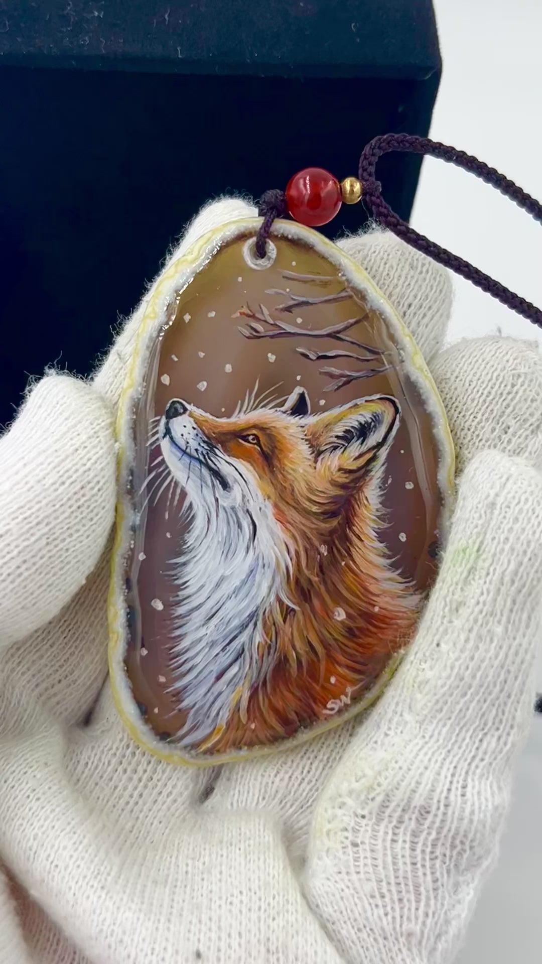 Einzigartige Anhänger /der Fuchs/Achat/Hand bemalt