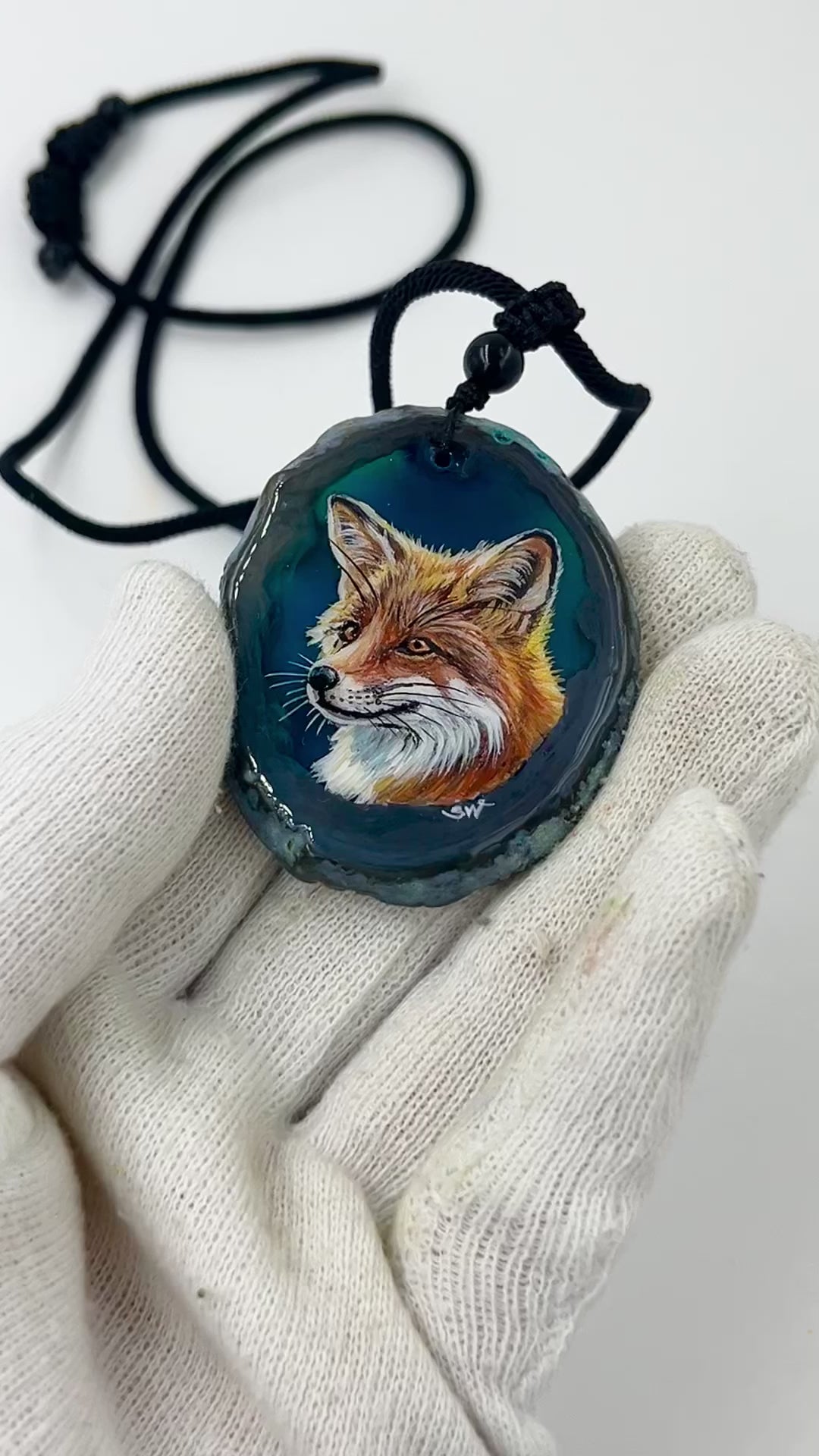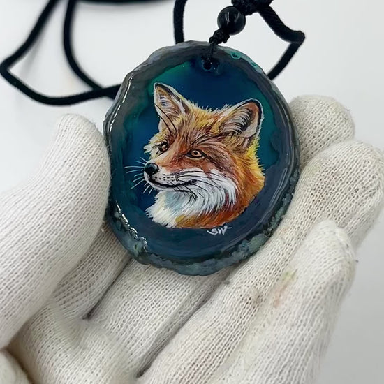 Einzigartige Anhänger /der Fuchs/Achat/Hand bemalt