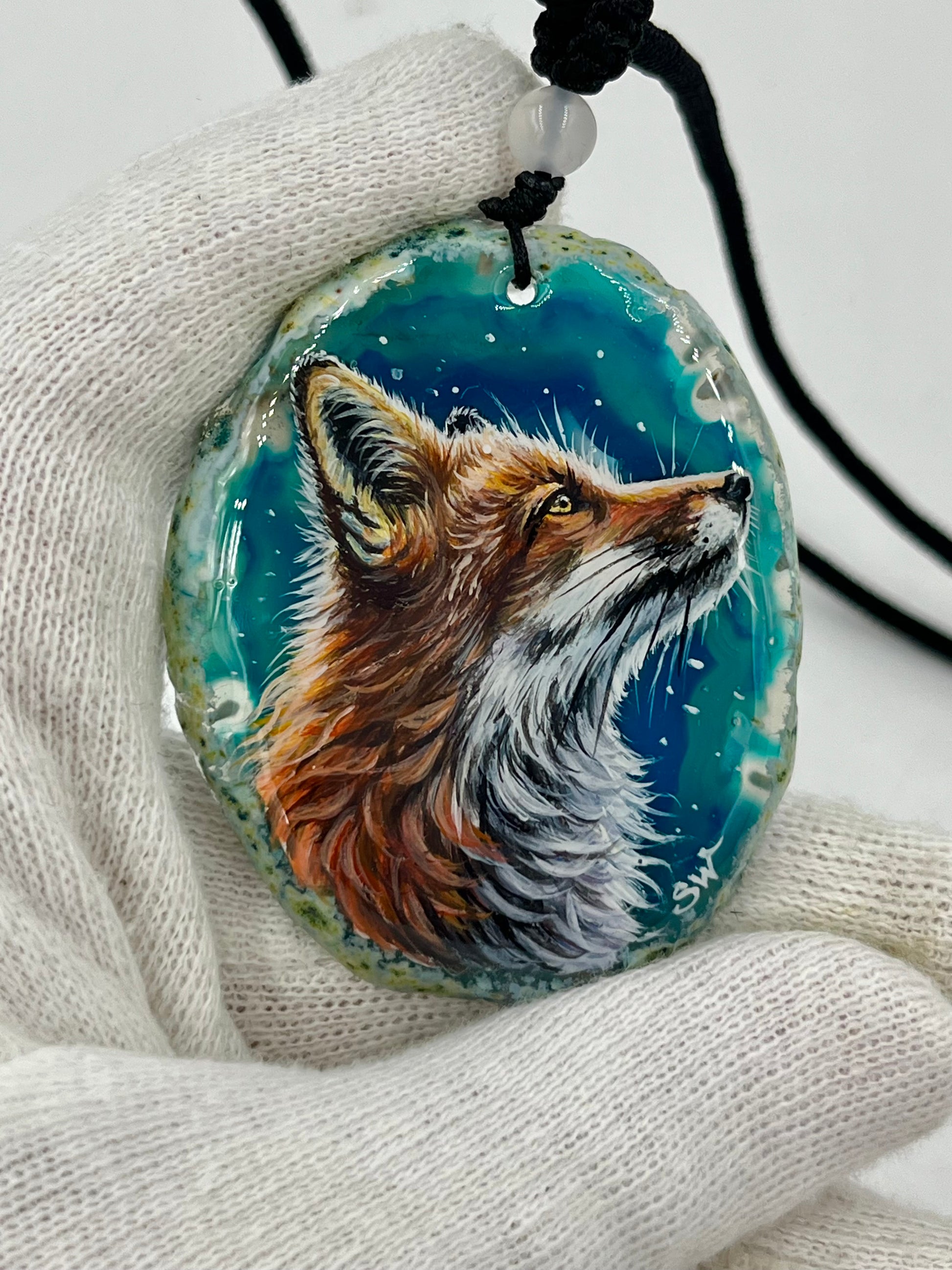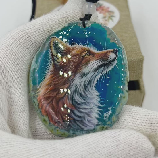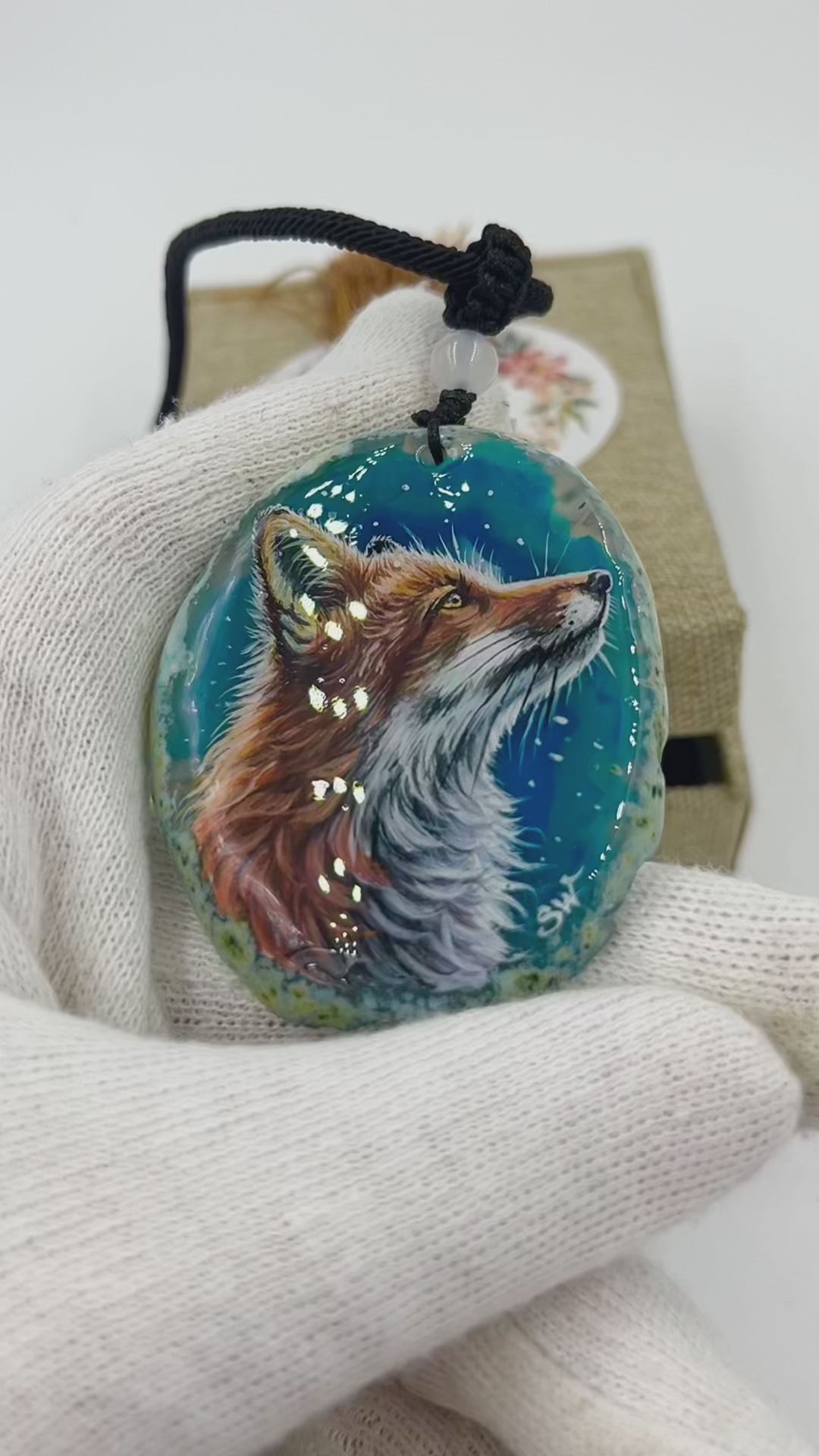 Einzigartige Anhänger /Der Fuchs /Achat/Hand bemalt Juwelen und tragbare Kunst /Natur Schmuck