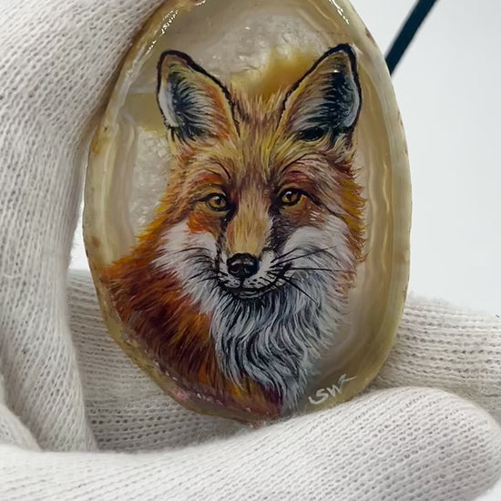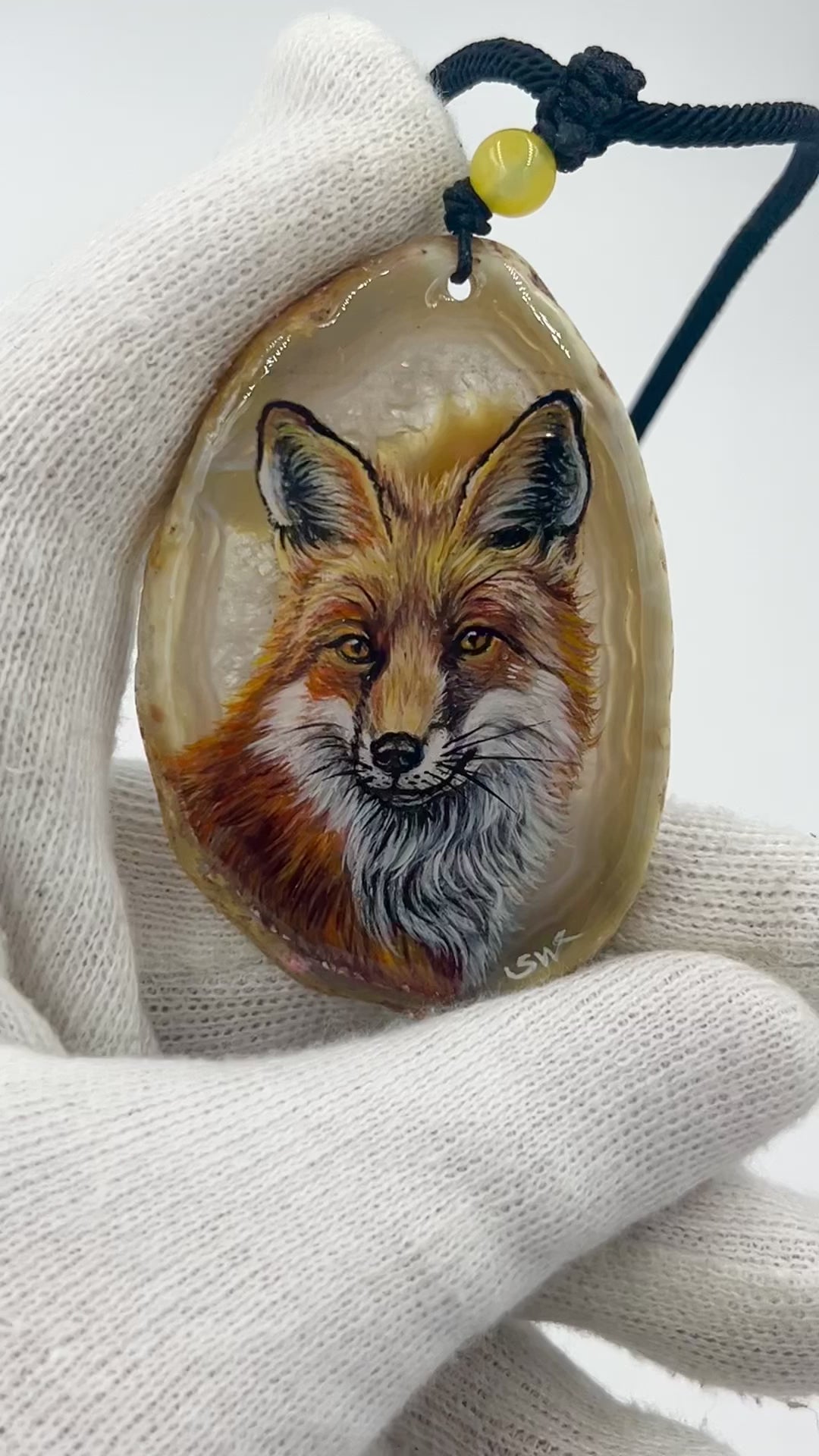 Einzigartige Anhänger /Der Fuchs/Achat/Hand bemalt Juwelen und tragbare Kunst /Natur Schmuck