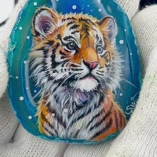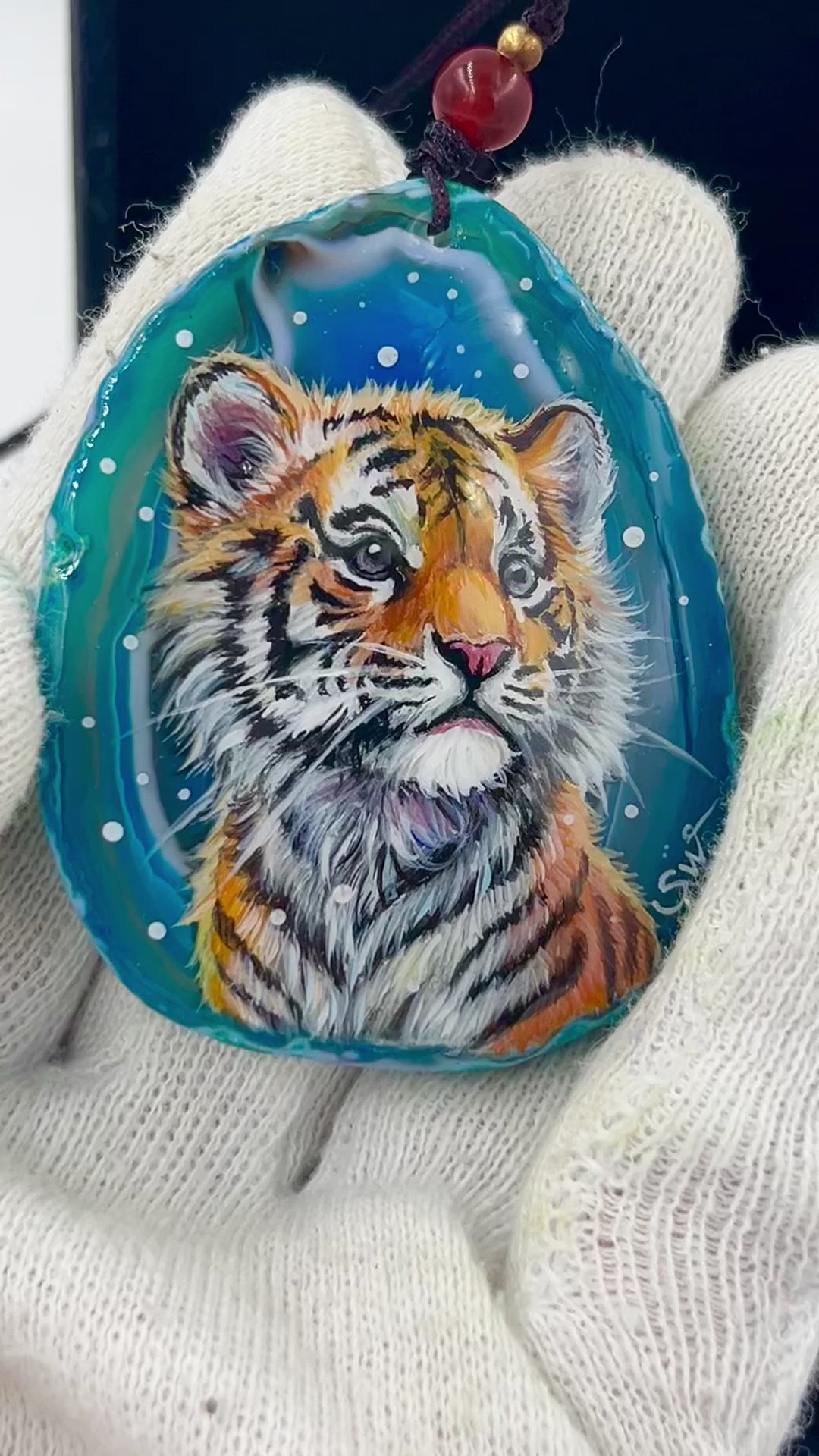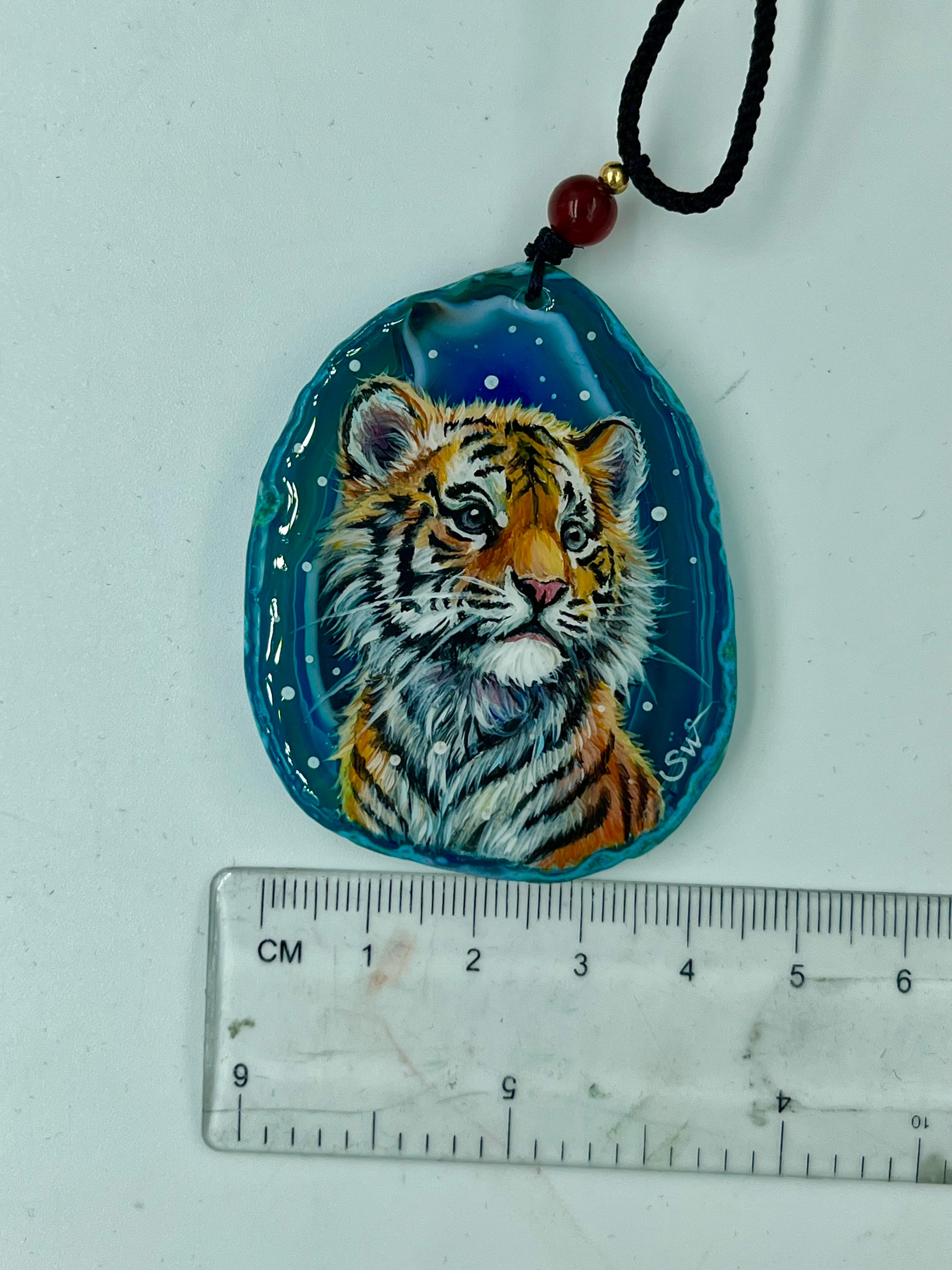Einzigartige Anhänger /der kleine Tiger/Achat/Hand bemalt