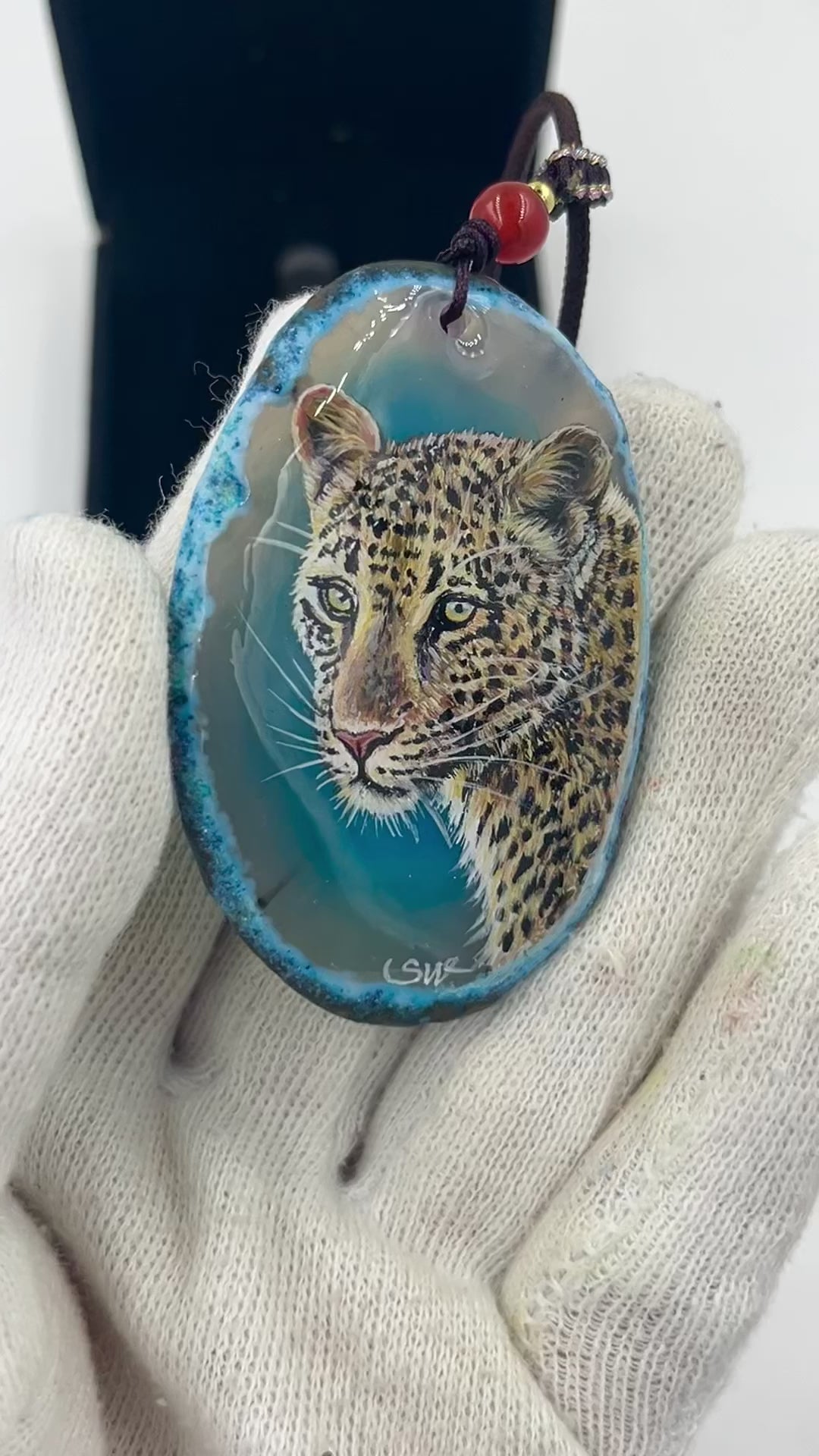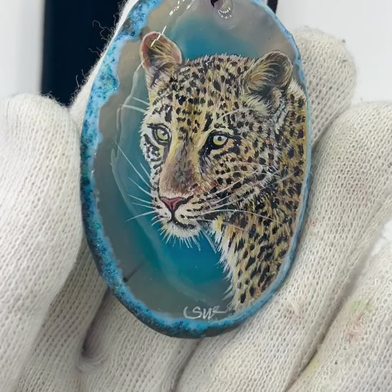 Einzigartige Anhänger /der Leopard/Achat/Hand bemalt