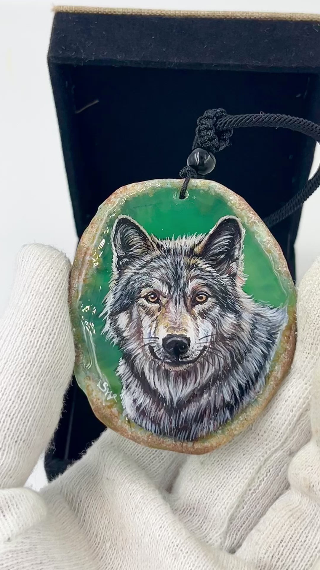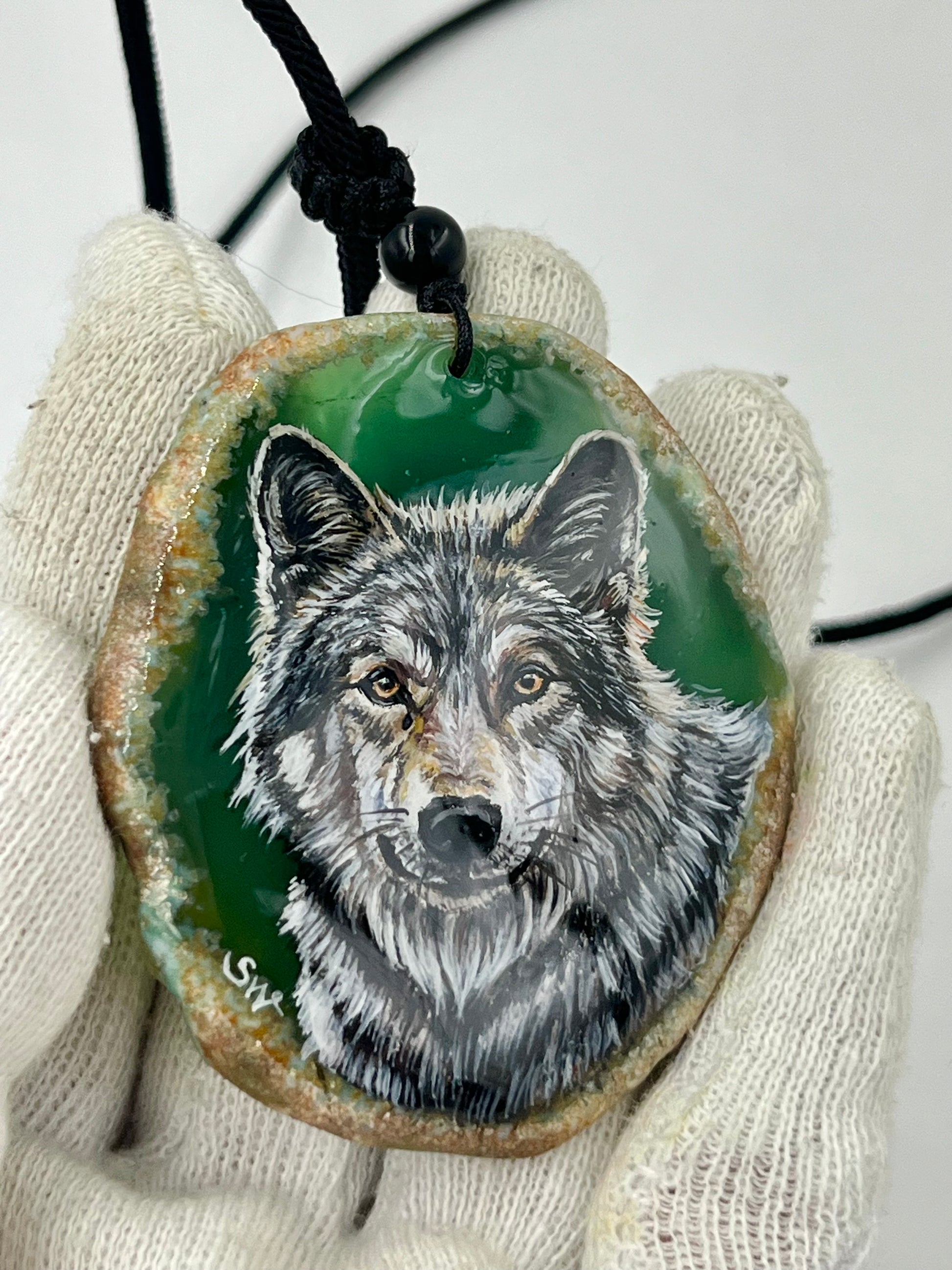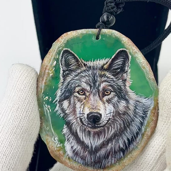 Einzigartige Anhänger /der Wolf/Achat/Hand bemalt