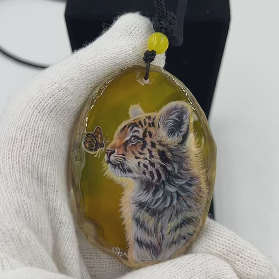 Einzigartige Anhänger /Einzigartige Anhänger /Das Tigeebaby /Achat/Hand bemalt Juwelen und tragbare Kunst /Natur Schmuck /Achat/Hand bemalt Juwelen und tragbare Kunst /Natur Schmuck