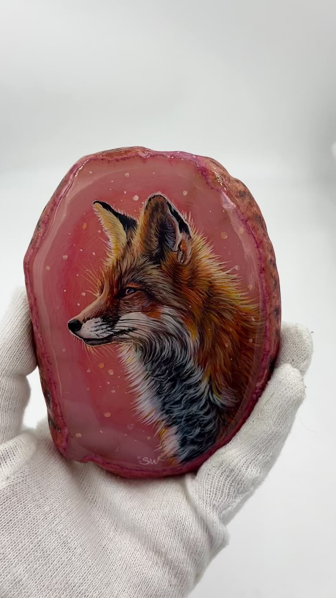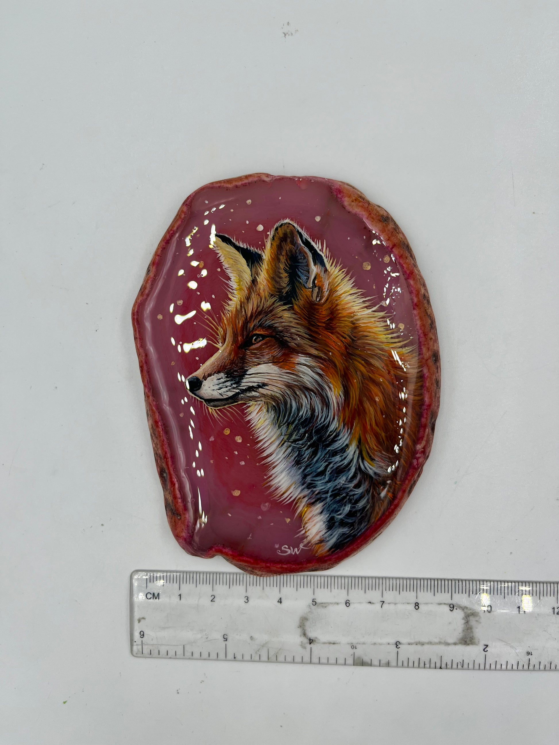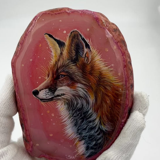 Einzigartige bemalt Achatscheibe/Der Fuchs /Hand bemalt /Deko/Tierpotrait/ink.Metallständer