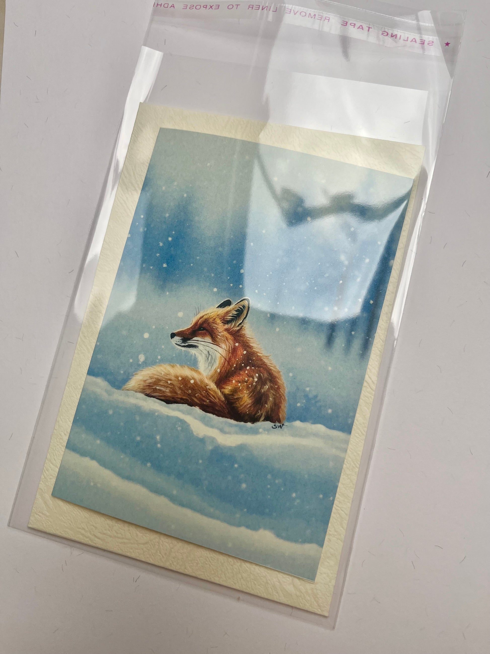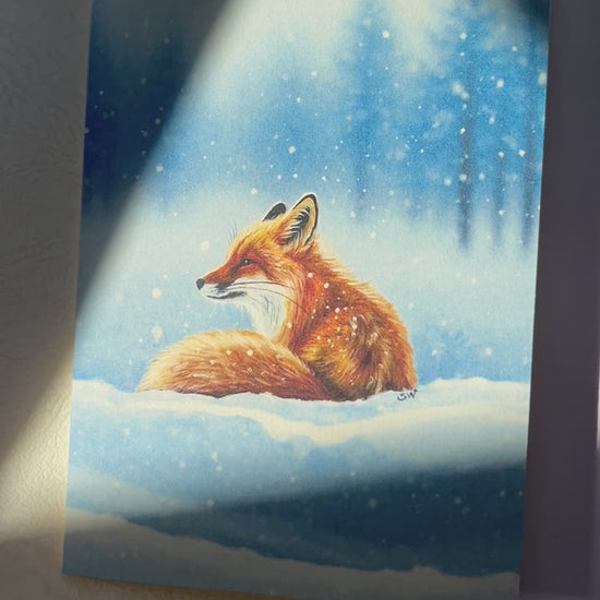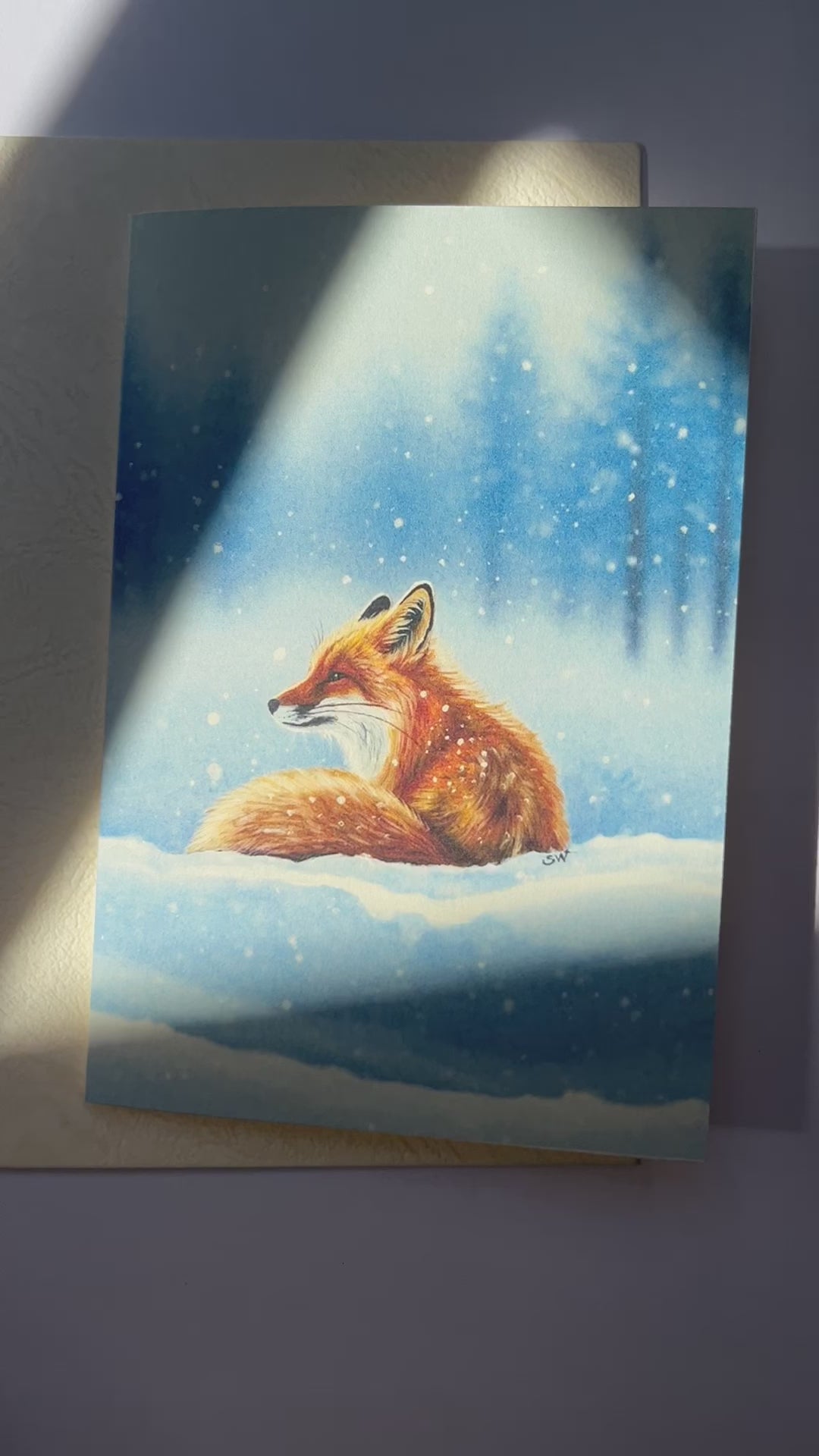 Grußkarte der Fuchs im Winter/ Papier(300g)/ Klappkarte Acryl Malerei Print